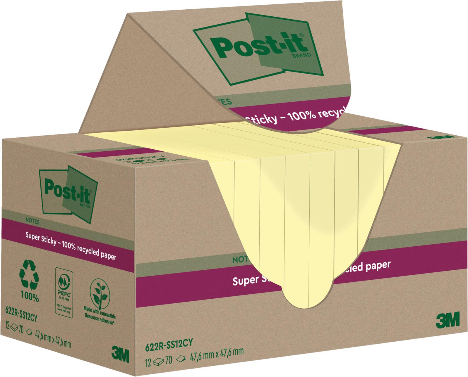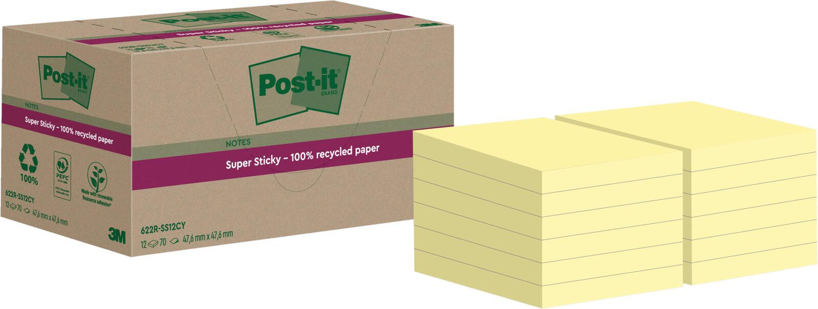 Die Post-it® Haftnotizen in der praktischen Größe von 4,8 x 4,8 cm sind die idealen Begleiter für deinen Alltag. Mit ihrem leuchtenden Gelb bringen sie Farbe in deine Notizen und sorgen dafür, dass wichtige Informationen nicht übersehen werden. Diese selbstklebenden Notizen sind aus hochwertigem Recycling-Papier gefertigt, was sie nicht nur umweltfreundlich, sondern auch besonders praktisch macht. Jeder Block enthält 70 Blatt, die sich leicht abtrennen lassen und auf nahezu jeder Oberfläche haften. Egal, ob du sie im Büro, zu Hause oder in der Schule verwendest, sie halten zuverlässig an und lassen sich jederzeit wieder entfernen, ohne Rückstände zu hinterlassen. Die Blockausführung sorgt dafür, dass du die Notizen immer griffbereit hast und sie einfach zu handhaben sind. Mit den Post-it® Haftnotizen kannst du Gedanken festhalten, Erinnerungen schaffen oder wichtige Aufgaben hervorheben. Ihre handliche Größe macht sie perfekt für kurze Notizen, während die auffällige Farbe sicherstellt, dass deine Botschaften sofort ins Auge fallen. Diese Haftnotizen sind nicht nur funktional, sondern auch ein stilvolles Accessoire für jeden Schreibtisch. Post-it® ist bekannt für seine hochwertigen Produkte, und diese Haftnotizen sind da keine Ausnahme. Sie bieten dir die Möglichkeit, deine Ideen und Gedanken schnell und unkompliziert festzuhalten. Das Material ist robust und sorgt dafür, dass die Notizen auch bei häufiger Nutzung ihre Form und Klebkraft behalten. Entdecke die Vielseitigkeit der Post-it® Haftnotizen und erlebe, wie einfach es ist, Ordnung in deinen Gedanken zu schaffen. Mit 12 Blöcken pro Packung bist du bestens ausgestattet, um deine Kreativität und Organisation auf ein neues Level zu heben.Technische Daten