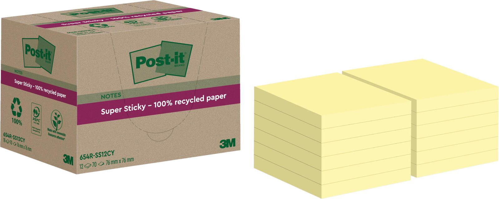 Die Post-it® Haftnotizen in der praktischen Größe von 7,6 x 7,6 cm sind der ideale Begleiter für deine täglichen Notizen, Erinnerungen und Ideen. Mit ihrem leuchtenden Gelb fallen sie sofort ins Auge und sorgen dafür, dass wichtige Informationen nicht übersehen werden. Diese Haftnotizen sind nicht nur selbstklebend, sondern auch aus hochwertigem Recycling-Papier gefertigt, was sie zu einer umweltfreundlichen Wahl macht. Jeder Block besteht aus 70 Blatt, die sich leicht abziehen und wieder anbringen lassen, ohne Rückstände zu hinterlassen. Dadurch kannst du sie flexibel nutzen, sei es im Büro, zu Hause oder in der Schule. Die Blockausführung ermöglicht eine einfache Handhabung, sodass du immer einen neuen Zettel zur Hand hast, wann immer du ihn benötigst. Die Post-it® Haftnotizen sind perfekt, um Gedanken festzuhalten, Aufgaben zu organisieren oder kreative Ideen zu skizzieren. Ihre handliche Größe macht sie zu einem unverzichtbaren Werkzeug für jeden, der Wert auf Ordnung und Übersichtlichkeit legt. Egal, ob du sie für persönliche Notizen oder im Team verwenden möchtest, diese Haftnotizen bieten dir die Flexibilität und Sichtbarkeit, die du brauchst. Mit 12 Blöcken pro Packung bist du bestens ausgestattet, um deine Notizen übersichtlich zu gestalten und immer einen Vorrat griffbereit zu haben. Die Post-it® Haftnotizen sind nicht nur funktional, sondern auch ein stylisches Accessoire für deinen Arbeitsplatz. Sie kombinieren Qualität, Praktikabilität und Umweltbewusstsein in einem Produkt, das dir hilft, organisiert und kreativ zu bleiben.Technische Daten