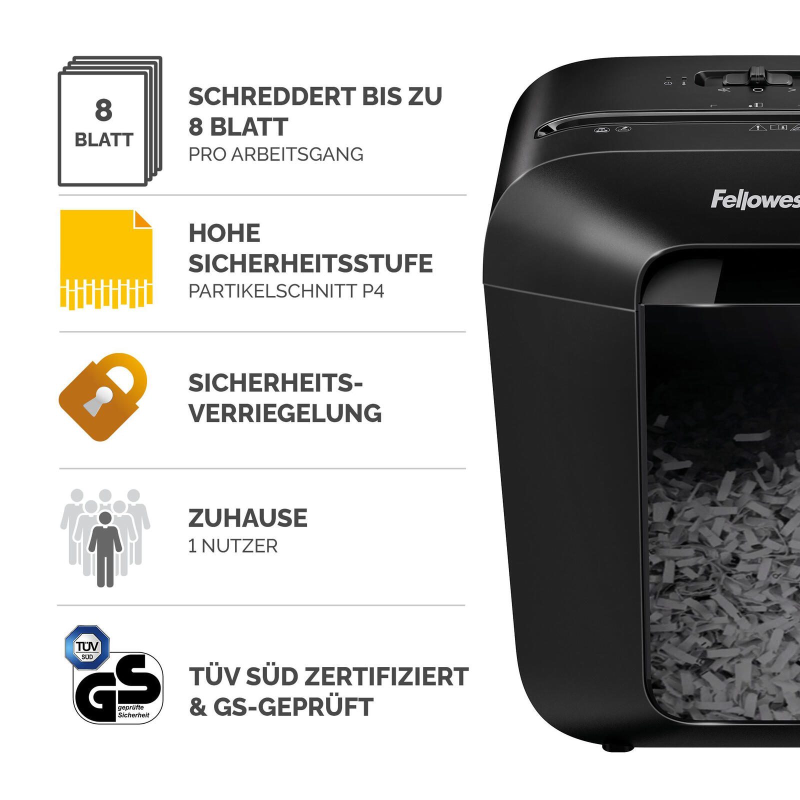 Fellowes Powershred LX45 Aktenvernichter mit Partikelschnitt bis 8 Blatt schwarz