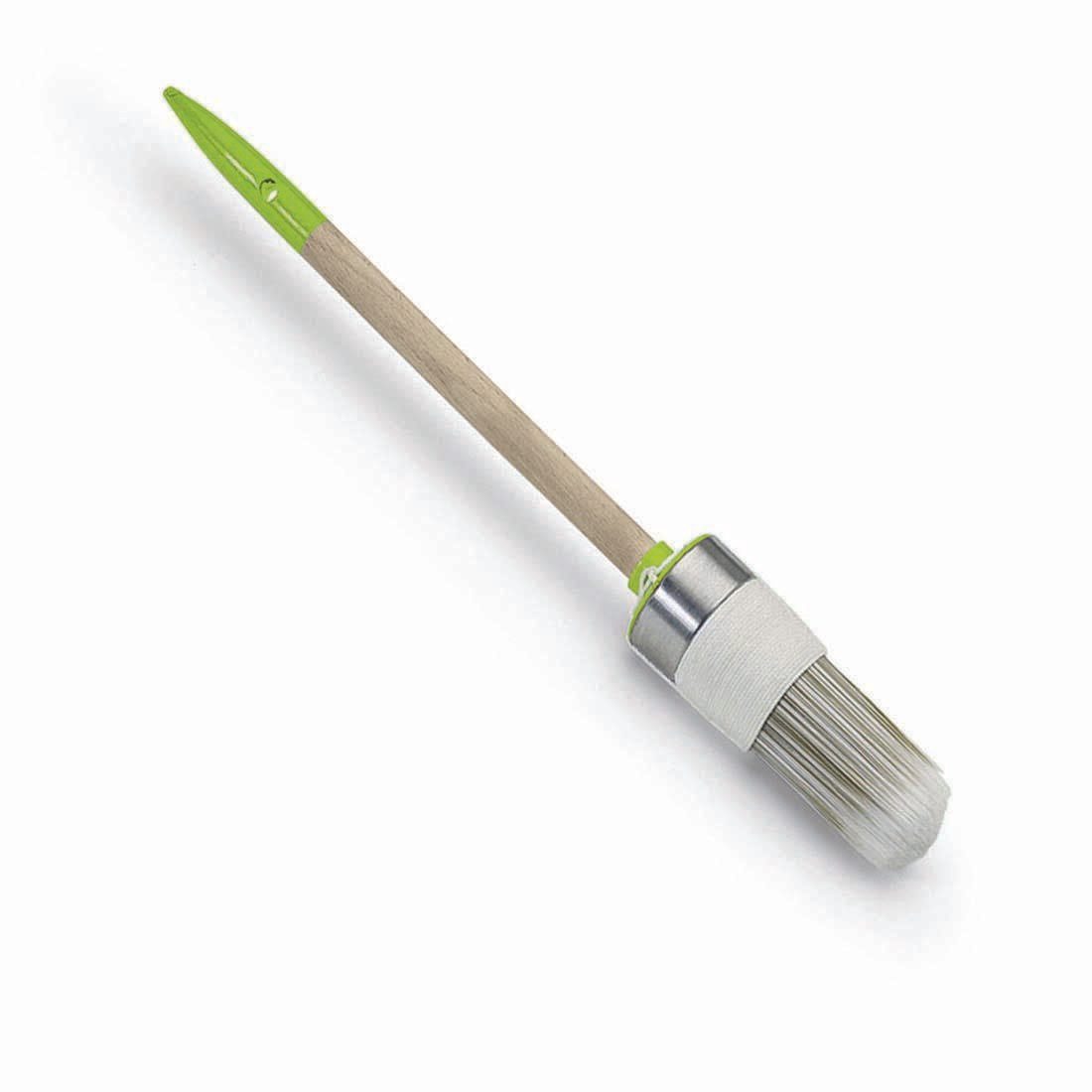 - Hochwertige, vollsynthetische Spezialborste. Chemisch gespitzt. Rostgeschützte Metallkapsel, grüne Kappe, Holzstiel Buche unlackiert.