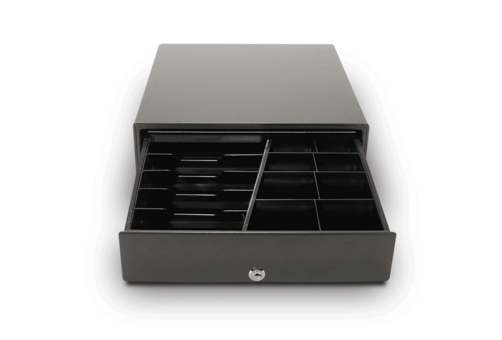 Die Öffnung der Kassenschublade erfolgt sowohl elektrisch als auch über eine praktische Schlüssel-Öffnung, was flexible Einsatzmöglichkeiten im täglichen Geschäftsbetrieb erlaubt und die Sicherheit erhöht. Das robuste Gehäuse in Anthrazit sorgt für eine ansprechende Optik und eine langlebige Nutzung. Dank der durchdachten Konstruktion ist die Kassenschublade sowohl für den Einsatz als Geldkassette als auch als Geldkoffer geeignet, was sie zu einem vielseitigen Begleiter für den Kassenbereich macht.