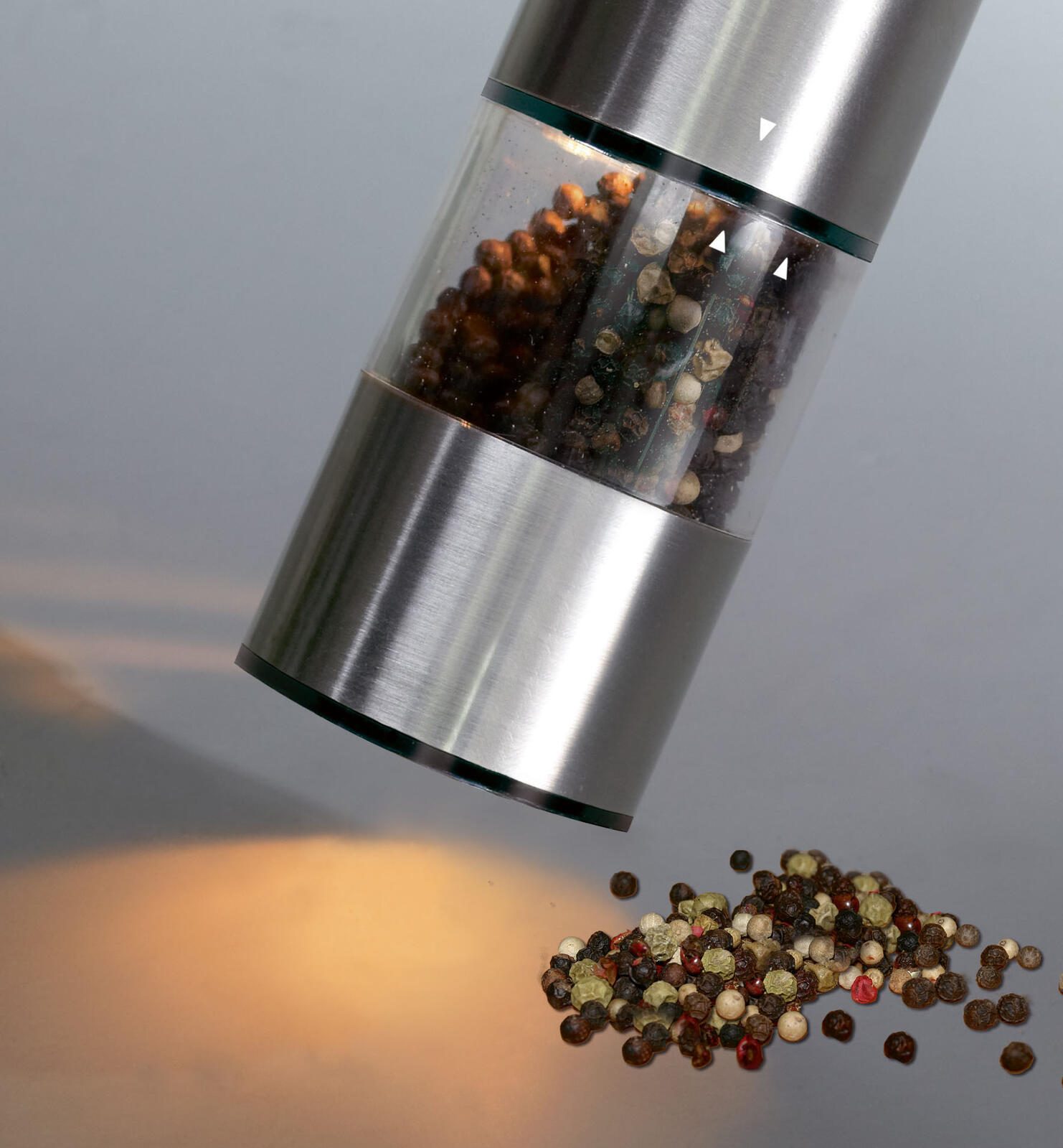 Das ProfiCook PC-PSM 1031 elektrisches Salz- & Pfeffermühlen-Set vereint modernes Design und hohe Funktionalität in einem eleganten Paket. Mit seiner transparenten und silbernen Farbgestaltung fügt sich dieses Set nahtlos in jede Kücheneinrichtung ein und wird schnell zum Blickfang auf deinem Tisch. Das hochwertige Edelstahlgehäuse sorgt nicht nur für eine ansprechende Optik, sondern garantiert auch Langlebigkeit und Robustheit. Die elektrischen Mühlen sind nicht nur praktisch, sondern erleichtern dir auch das Würzen deiner Speisen auf eine komfortable Art und Weise. Mit einem einfachen Knopfdruck kannst du frisch gemahlenes Salz oder Pfeffer genießen, was den Geschmack deiner Gerichte erheblich verbessert. Die präzise Mahlmechanik sorgt dafür, dass die Gewürze gleichmäßig und fein gemahlen werden, sodass du die Aromen optimal entfalten kannst. Dank der transparenten Sichtfenster kannst du jederzeit den Füllstand der Mühlen im Blick behalten, was dir eine rechtzeitige Nachfüllung ermöglicht. Die handliche Größe und das ergonomische Design der Mühlen liegen gut in der Hand und machen die Anwendung zum Kinderspiel. Das ProfiCook PC-PSM 1031 Set ist nicht nur für den Eigenbedarf ideal, sondern auch ein perfektes Geschenk für Kochliebhaber. Mit diesem Set bringst du nicht nur mehr Geschmack in deine Küche, sondern auch einen Hauch von Eleganz auf den Tisch. Vertraue auf die Qualität von ProfiCook und erlebe die Vorteile dieser elektrischen Gewürzmühlen in deiner eigenen Küche.Technische Daten