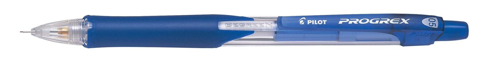 Der PILOT Druckbleistift Progrex BeGreen ist die ideale Wahl für alle, die beim Schreiben und Zeichnen Wert auf Qualität und Nachhaltigkeit legen. Mit einem modernen und ergonomischen Design ausgestattet, bietet dieser Druckbleistift nicht nur ein angenehmes Schreibgefühl, sondern überzeugt auch durch seine umweltfreundlichen Eigenschaften. Der Progrex BeGreen ist nachfüllbar und trägt somit zur Reduzierung von Abfall bei, was ihn zu einem umweltbewussten Begleiter im Alltag macht. Die gummierte, runde Griffart sorgt für einen sicheren Halt, selbst bei längerem Gebrauch. Mit einer Strichstärke von 0,5 mm und einem Härtegrad von HB ermöglicht der Druckbleistift präzises Schreiben und Zeichnen. Die federnd gelagerte Mine schützt vor Bruch und gewährleistet ein gleichmäßiges und flüssiges Schreiben, sodass Du Dich ganz auf Deine kreativen Ideen konzentrieren kannst. Zusätzlich ist der Druckbleistift mit einem praktischen Clip ausgestattet, der es Dir ermöglicht, ihn einfach an Notizbüchern oder Taschen zu befestigen. Ein integrierter Radierer sorgt dafür, dass kleine Fehler im Handumdrehen korrigiert werden können, was besonders beim Zeichnen von Vorteil ist. Die blaue Farbgebung des Progrex BeGreen verleiht dem Druckbleistift einen modernen Look und macht ihn zu einem stilvollen Accessoire für Schule, Büro oder kreative Projekte. Erfahre den Unterschied, den ein hochwertiger Druckbleistift in Deiner täglichen Schreib- und Zeichenroutine machen kann. Mit dem PILOT Druckbleistift Progrex BeGreen erhältst Du ein zuverlässiges und umweltfreundliches Schreibinstrument, das sowohl für professionelle Anwendungen als auch für den privaten Gebrauch geeignet ist.Technische Daten