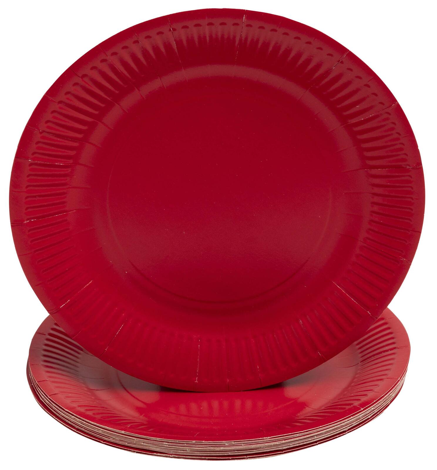 Die Teller sind in der Farbe Rot gehalten, was ihnen eine auffällige und ansprechende Optik verleiht. Die Packung enthält 20 Stück, sodass Du für kleine oder größere Anlässe ausreichend Teller zur Verfügung hast. Die Verwendung von Pappe als Material sorgt dafür, dass die Teller leicht und dennoch stabil sind.