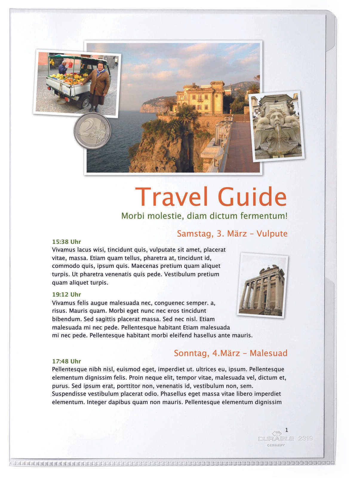 Die DURABLE Sichthüllen DIN A4 glatt 0.15 mm sind die ideale Lösung, um deine Dokumente professionell und sicher zu präsentieren. Mit einer Stärke von 0.15 mm bieten diese Hüllen nicht nur einen hohen Schutz, sondern bewahren auch die Qualität deiner Unterlagen. Die glasklare Oberfläche sorgt dafür, dass deine Dokumente in vollem Glanz erstrahlen und gleichzeitig vor Staub, Schmutz und Abnutzung geschützt sind. Diese Sichthüllen sind aus hochwertigem PVC gefertigt und zeichnen sich durch ihre Langlebigkeit und Dokumentenechtheit aus. Dank des praktischen Designs mit Öffnungen oben und seitlich kannst du deine Unterlagen mühelos einlegen und entnehmen. Die Hüllen sind für das Format DIN A4 geeignet und bieten somit ausreichend Platz für deine wichtigsten Dokumente, von Präsentationen bis hin zu Berichten. Ein weiterer Vorteil der DURABLE Sichthüllen ist, dass sie ohne Lochung sind, was bedeutet, dass deine Dokumente nicht beschädigt werden, wenn du sie in einen Ordner abheftest. Die glatte Oberfläche ermöglicht zudem ein einfaches Wischen und Reinigen, sodass deine Hüllen stets in einwandfreiem Zustand bleiben. In einer Packung erhältst du 50 Stück, was sie zu einer praktischen und kosteneffektiven Wahl für den täglichen Gebrauch macht. Ob im Büro, in der Schule oder zu Hause, die DURABLE Sichthüllen sind ein unverzichtbares Hilfsmittel, um deine Dokumente ordentlich und professionell zu präsentieren.Technische Daten