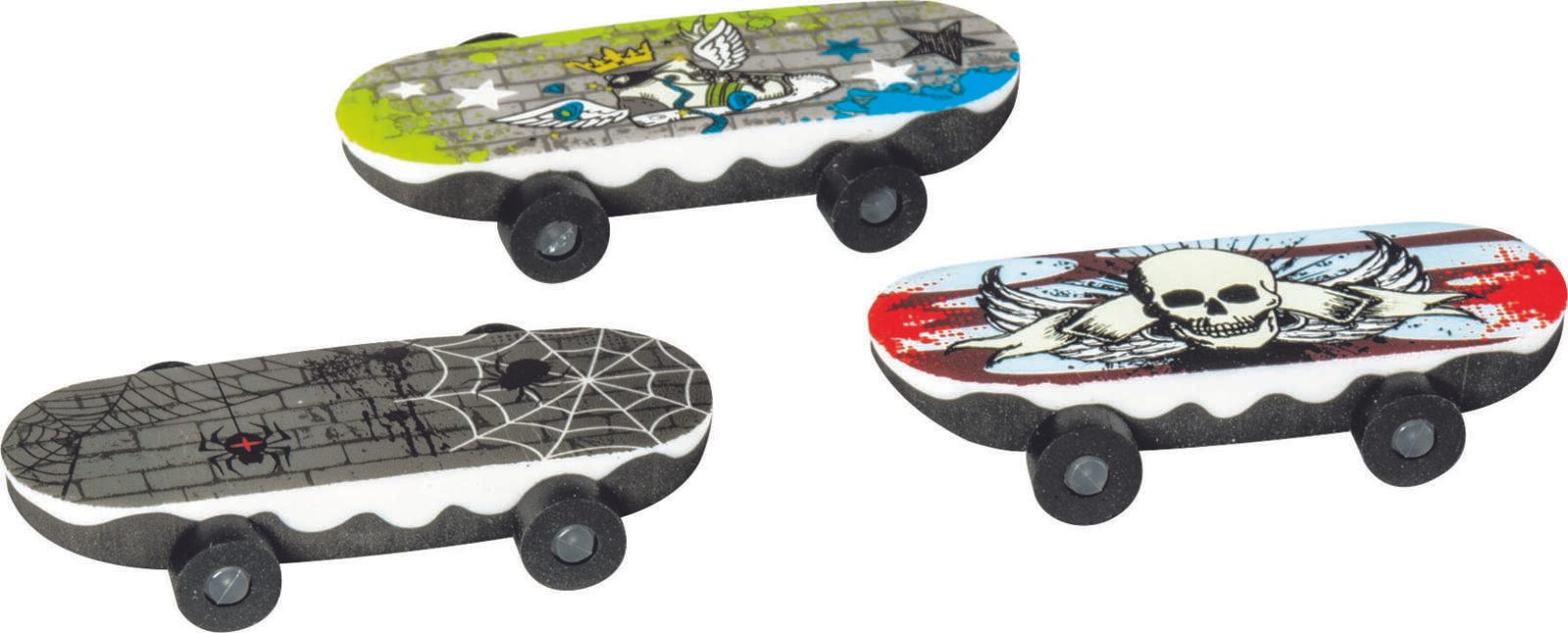 Radierer Skateboard Radiergummi gelb, grau, rot
