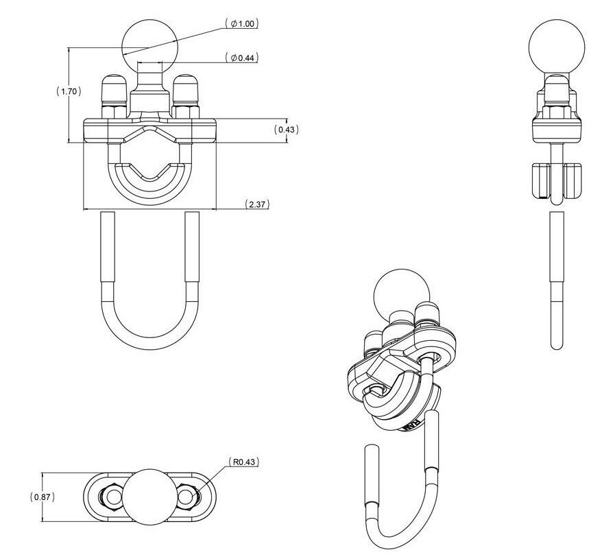 RAM MOUNTS Klemmschelle mit B-Kugel (1 Zoll)