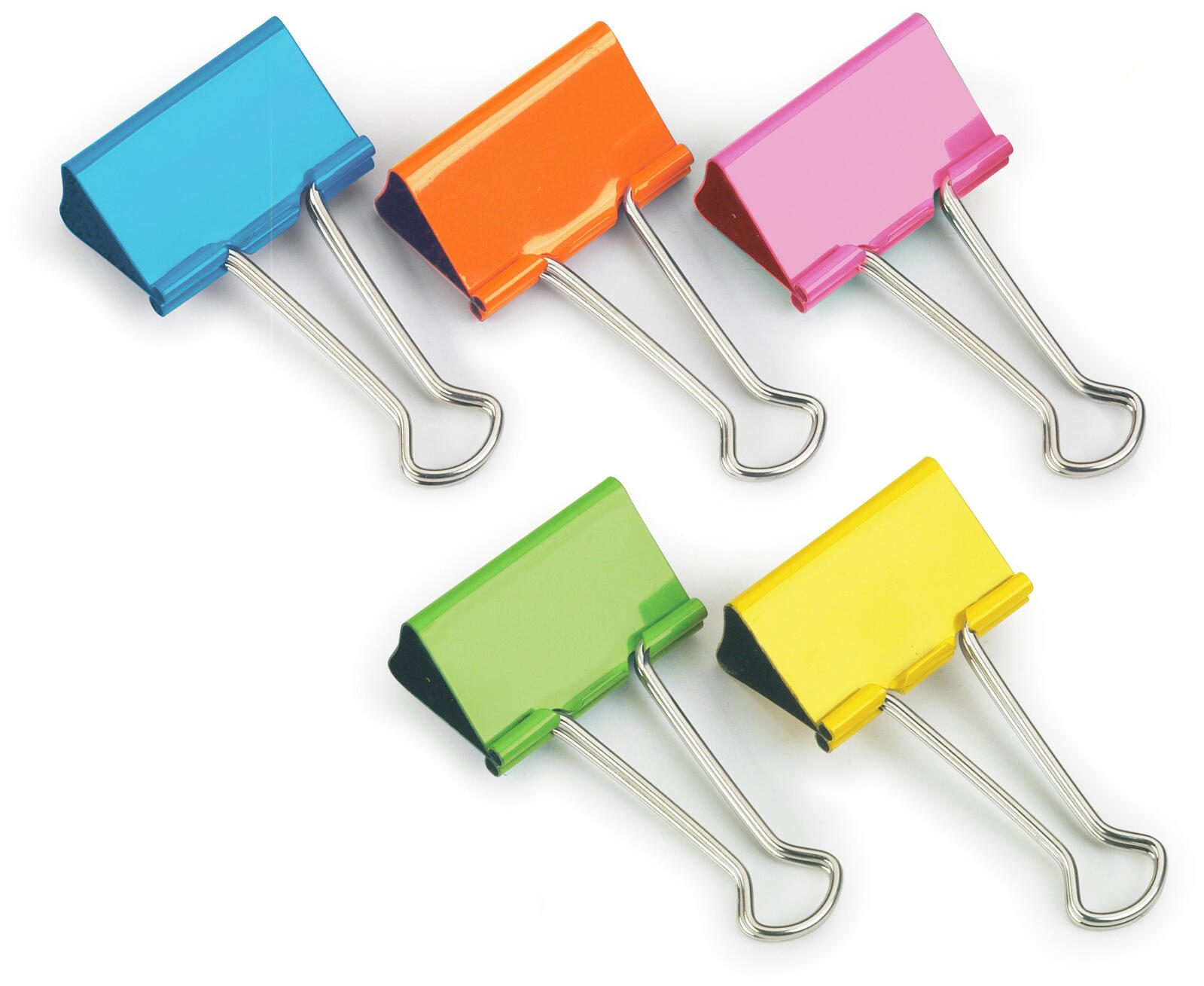 Die RAPESCO® Foldbackklammern sind praktische Büroklammern aus Metall, die sich durch ihre farbenfrohe Gestaltung auszeichnen. Das Set enthält 10 Stück in den Farben blau, orange, pink, grün und gelb. Mit einer Breite von 32 mm eignen sich diese Klammern ideal zum Zusammenhalten von mehreren Blättern Papier, ohne diese zu beschädigen.