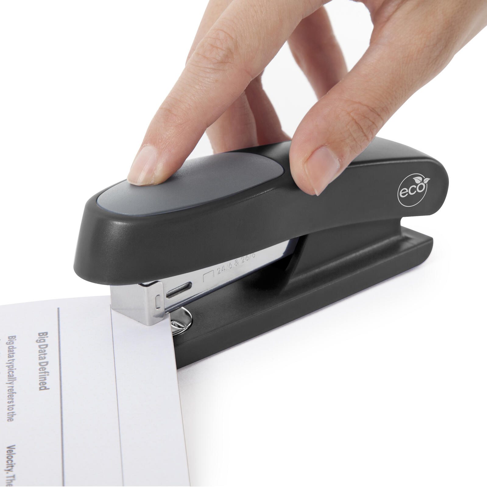 Das RAPESCO® Heftgerät Germ-Savvy ECO Sting Ray ist ein robustes Büroheftgerät in der Farbe Schwarz. Es zeichnet sich durch eine Kombination aus Recycling-Kunststoff und Metall aus, was ihm eine stabile und zugleich umweltfreundliche Konstruktion verleiht. Das Heftgerät ist mit einer Oberlademechanik ausgestattet, die das Nachfüllen der Heftklammern einfach und komfortabel gestaltet.