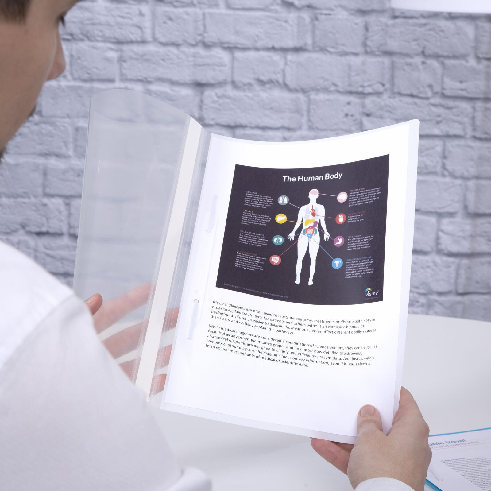 Dank seines Formats für DIN A4 ist der Schnellhefter ideal für Standarddokumente geeignet. Die transparente Vorderseite ermöglicht es dir, den Inhalt der Hefter sofort zu erkennen, was die Organisation und Identifizierung deiner Unterlagen erleichtert. Mit einer Fassungskapazität von bis zu 30 Blatt ist dieser Hefter perfekt für den täglichen Gebrauch im Büro, zu Hause oder in der Schule.