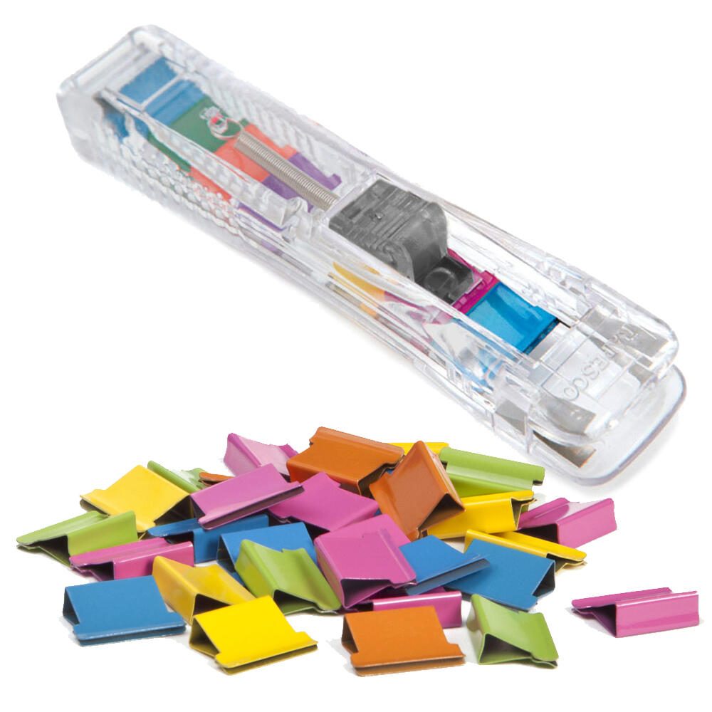 Der RAPESCO® Supaclip-Spender ist die ideale Lösung für deine Papierbefestigungsanforderungen. Dieser innovative Spender ist in einem Set von pink, gelb, blau, grün und orange sortierten Farben erhältlich, um einen Hauch von Farbe und Organisation in dein Büro oder Arbeitsbereich zu bringen.