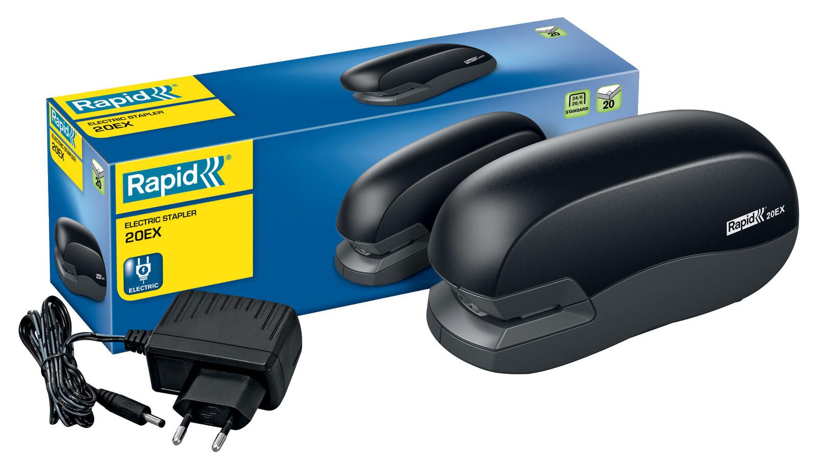 Das Rapid Elektroheftgerät in Schwarz ist ein Must-Have für effizientes Heften. Mit einer geschlossenen Heftung garantiert es professionelle Ergebnisse. Die Klammergrößen 24/6 und 26/6 ermöglichen das Heften von 2 bis 20 Blatt Papier. Dank der benutzerfreundlichen Springfach-Lademechanik ist das Nachfüllen der Klammern ein Kinderspiel. Dieses Elektroheftgerät von Rapid besticht nicht nur durch seine Leistung, sondern auch durch sein elegantes Design in Schwarz. Es vereint Stil mit Funktionalität und passt perfekt in jede Büroumgebung. Die Stromversorgung erfolgt über den Stromanschluss, wodurch du immer einsatzbereit bist, ohne dich um Batterien kümmern zu müssen. Mit dem Rapid Elektroheftgerät kannst du mühelos Papierdokumente zusammenhalten, organisieren und präsentieren. Es ist ideal für den täglichen Gebrauch im Büro, in der Schule oder zu Hause. Rapid, der renommierte Hersteller dieses hochwertigen Elektroheftgeräts, steht für Zuverlässigkeit und Qualität. Ob für den gelegentlichen Gebrauch oder für umfangreiche Projekte, dieses Gerät wird deinen Anforderungen gerecht. Investiere in das Rapid Elektroheftgerät in Schwarz und erlebe die Leichtigkeit des Heftens. Für eine effiziente, ordentliche und professionelle Dokumentenverwaltung ist dieses Gerät unverzichtbar.Technische Daten