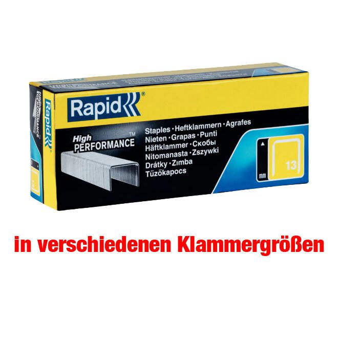 Die Rapid Tackerklammern sind die ideale Wahl für alle, die auf der Suche nach zuverlässigen und robusten Klammern sind. Hergestellt aus hochwertigem Stahldraht, bieten diese Klammern eine bemerkenswerte Stabilität und Langlebigkeit. Mit einer Klammergröße von 10 mm sind sie perfekt geeignet für eine Vielzahl von Anwendungen, sei es im Handwerk, im Büro oder für kreative Projekte zu Hause. Die Rapid Tackerklammern sind speziell für die Verwendung mit den Rapid Tacker-Modellen PRO und HOBBY konzipiert. Dies gewährleistet nicht nur eine optimale Passgenauigkeit, sondern auch eine mühelose Handhabung. Du kannst dich darauf verlassen, dass diese Klammern auch bei intensiver Nutzung zuverlässig funktionieren. Obwohl keine spezifischen Angaben zur maximalen Heftleistung gemacht werden, ist die Qualität und Leistung der Rapid Produkte allgemein bekannt und geschätzt. Mit einer Packung von 5.000 Stück hast du ausreichend Material, um deine Projekte effizient und ohne Unterbrechungen durchzuführen. Egal, ob du Möbel zusammenbauen, Bastelarbeiten erledigen oder einfach nur Dokumente zusammenheften möchtest, die Rapid Tackerklammern sind die perfekte Lösung. Ihre vielseitige Einsetzbarkeit macht sie zu einem unverzichtbaren Werkzeug in jedem Haushalt oder Büro. Entscheide dich für die Rapid Tackerklammern und erlebe die Vorteile von Qualität und Leistung, die dir helfen, deine Aufgaben schnell und effektiv zu erledigen.Technische Daten