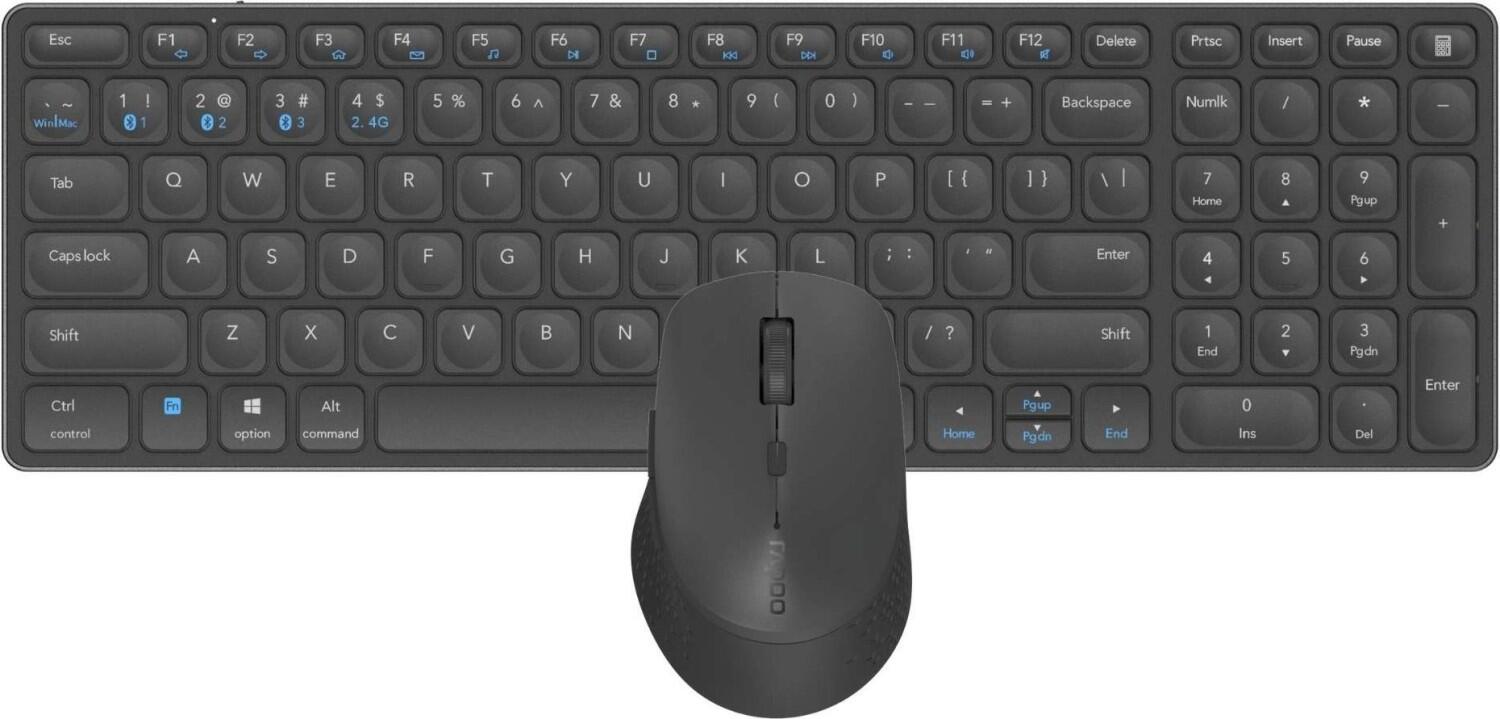 Rapoo 9700M - Dunkelgrau Kabelloses ultraflaches Multimodus-Desktop-Set mit erweiterten Funktionen, DE-Layout