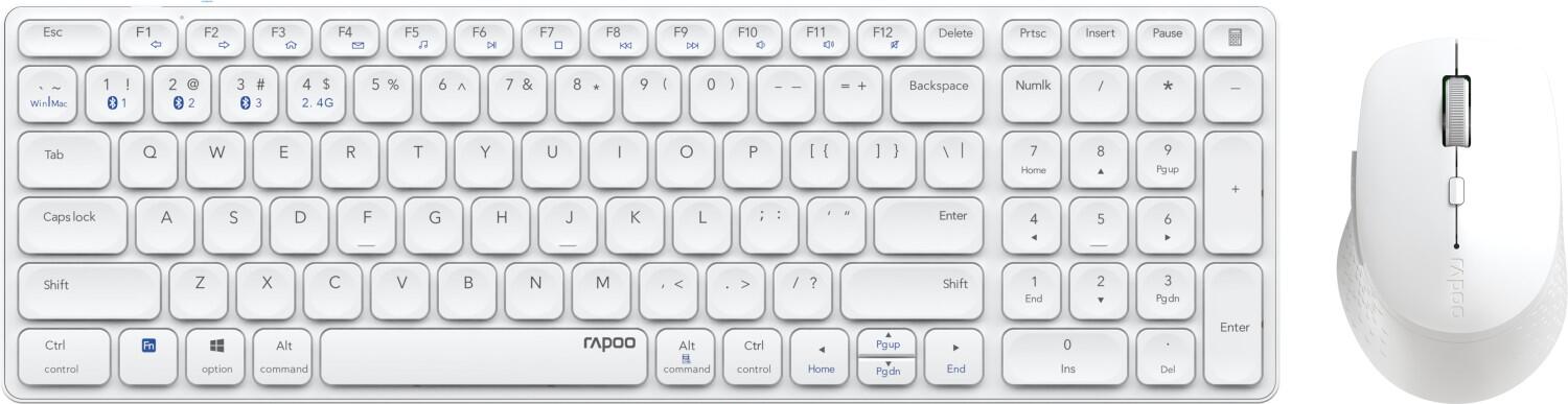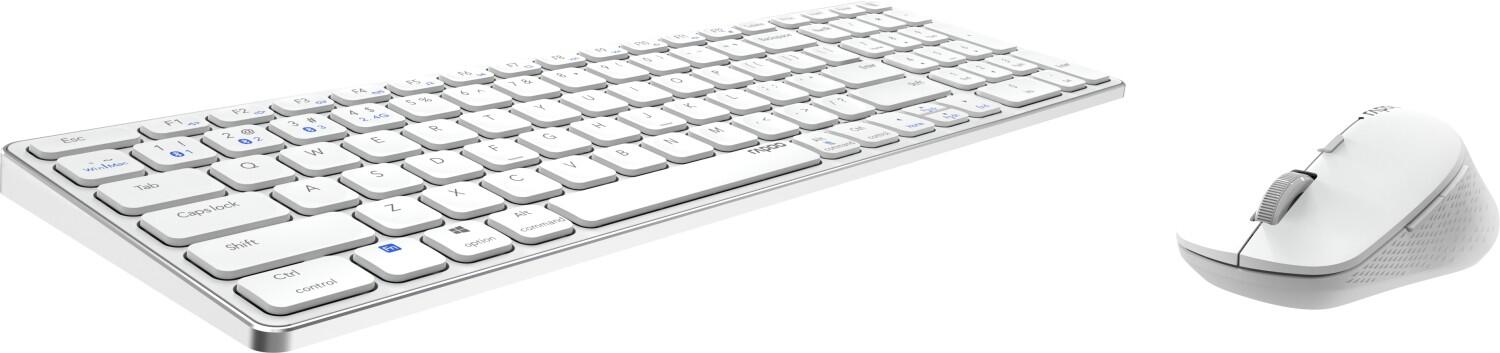 Rapoo 9700M - Weiß Kabelloses ultraflaches Multimodus-Desktop-Set mit erweiterten Funktionen, DE-Layout