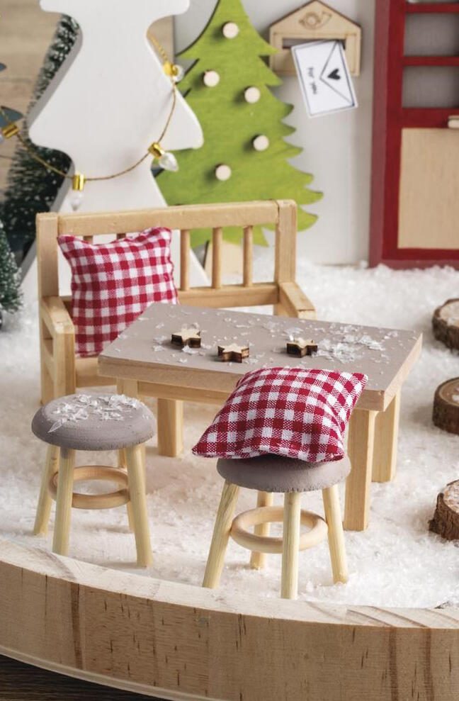 Das Set ist Teil der Serie „Wichtel Mini Tisch mit 2 Hockern“ und eignet sich ideal als dekoratives Element für verschiedene Bastel- und Dekorationsprojekte. Durch die kompakte Größe kann es vielseitig verwendet werden, zum Beispiel als detailreiches Zubehör für Miniaturlandschaften oder als liebevolle Ergänzung in kreativen Bastelarbeiten.