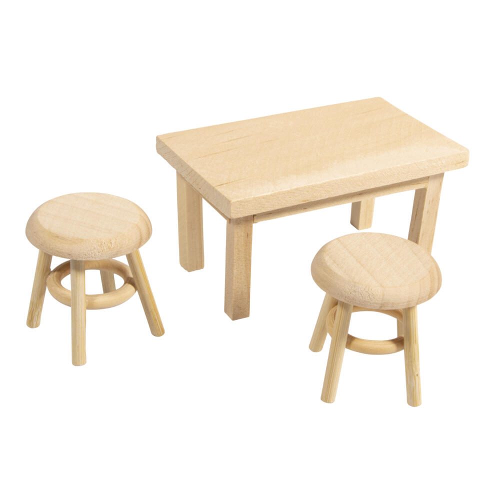 Rayher Dekoartikel natur Wichtel Mini Tisch mit 2 Hockern, 1 Set