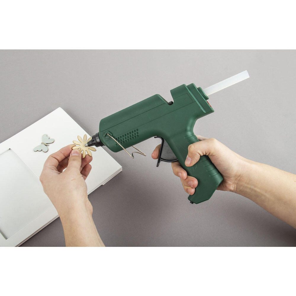 Die Rayher Kabellos HeiBklebpistole in elegantem Schwarz ist das ideale Werkzeug für kreative Projekte und Reparaturen in deinem Zuhause. Mit ihrer vielseitigen Anwendbarkeit eignet sie sich hervorragend für eine Vielzahl von Materialien, darunter Glas, Holz, Kork, Leder, Metall und Textil. Egal, ob du Kunsthandwerk betreibst, Möbel reparierst oder kreative Bastelideen umsetzt, diese HeiBklebpistole wird dich nicht enttäuschen. Die kabellose Betriebsart ermöglicht dir maximale Flexibilität und Bewegungsfreiheit beim Kleben. Du kannst sie überall einsetzen, ohne dich um lästige Kabel kümmern zu müssen. Dies macht sie besonders praktisch für Projekte, bei denen du viel Bewegung benötigst oder an schwer zugänglichen Stellen arbeiten musst. Die HeiBklebpistole ist für den Netzbetrieb konzipiert, sodass du immer eine zuverlässige Leistung erwarten kannst. Die Rayher HeiBklebpistole ist kompatibel mit 11,0 mm HeiBklebesticks, was dir eine breite Auswahl an Klebesticks bietet, um die besten Ergebnisse für dein Projekt zu erzielen. Die hochwertige Verarbeitung und das durchdachte Design garantieren eine einfache Handhabung und eine präzise Anwendung des Klebers. Mit der Rayher Kabellos HeiBklebpistole in Schwarz erhältst du ein leistungsstarkes und vielseitiges Werkzeug, das dir hilft, deine kreativen Ideen zu verwirklichen und alltägliche Reparaturen mühelos durchzuführen. Sie ist nicht nur funktional, sondern auch ein stilvolles Accessoire in deinem Bastelzimmer.Technische Daten