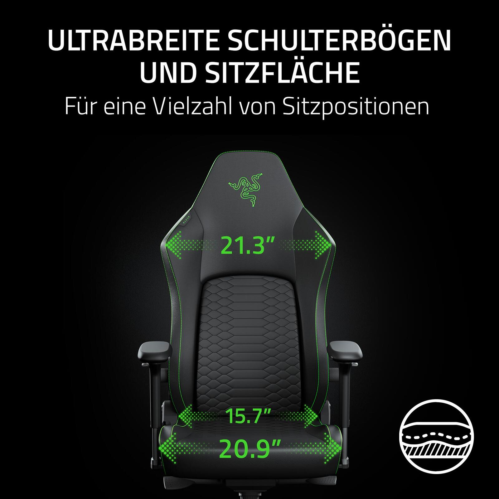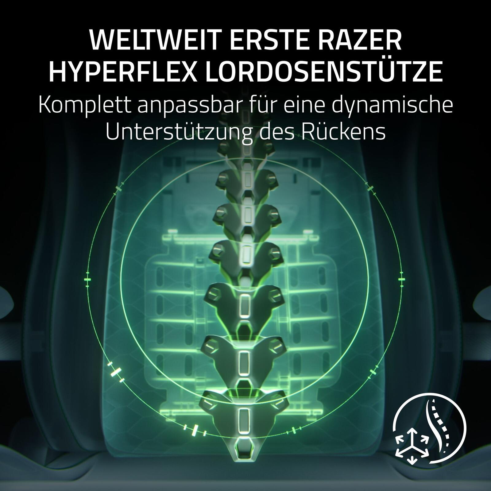 - Das weltweit erste Razer HyperFlex-Lendenwirbelstützsystem für eine vollständig einstellbare, wirklich dynamische Rückenstütze