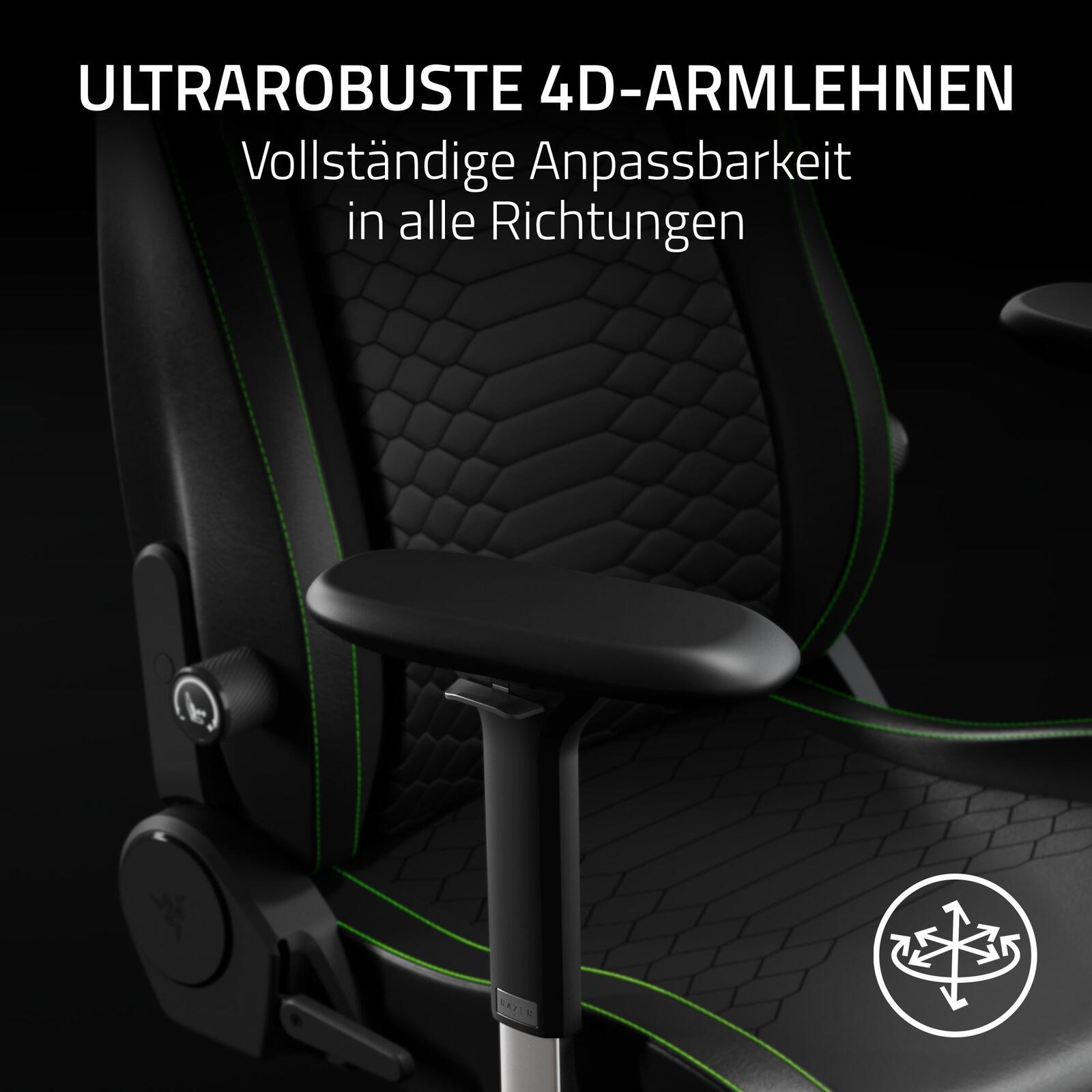 - Extrem strapazierfähige 4D-Armlehnen für umfassende Anpassungsmöglichkeiten