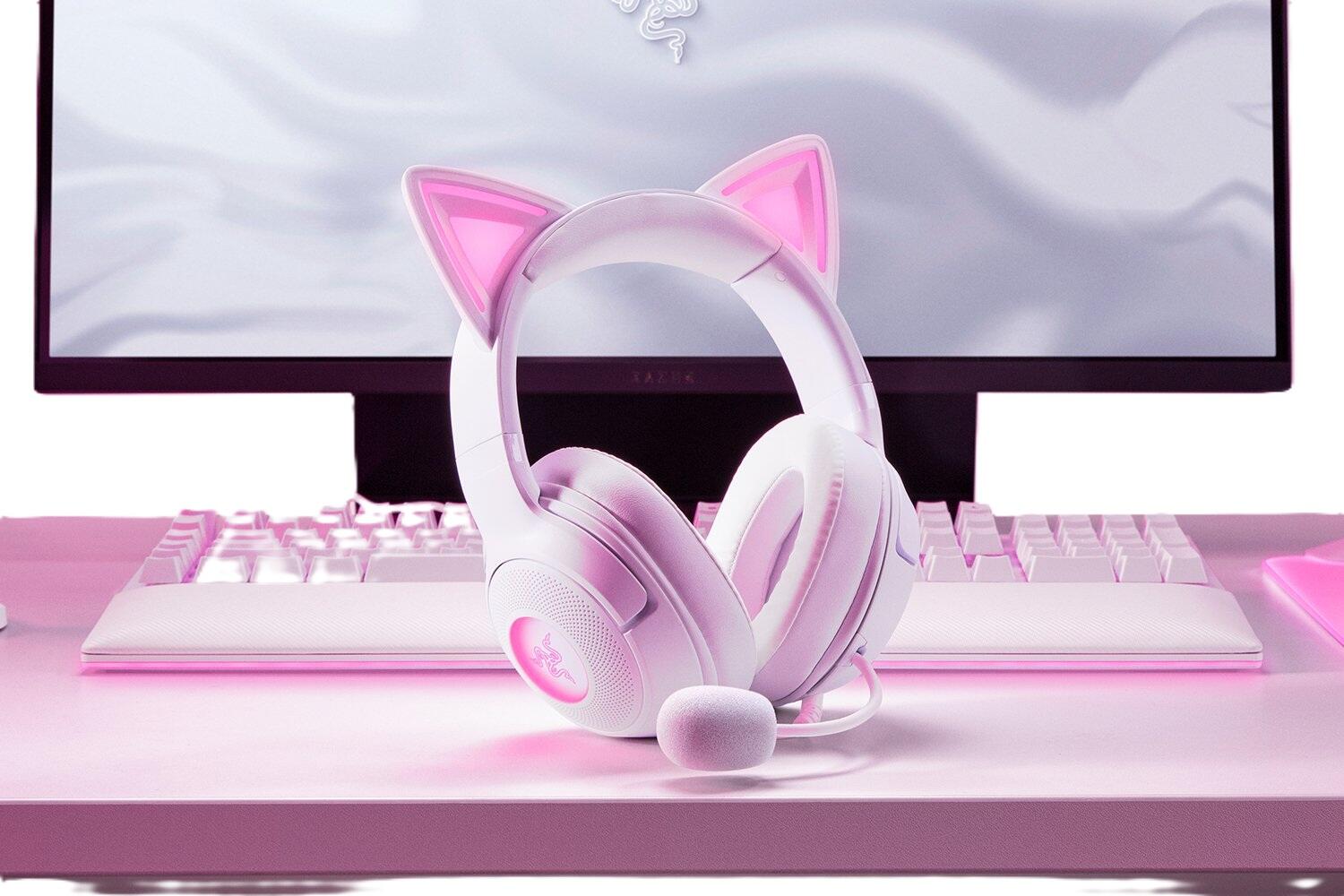 Razer Kraken Kitty V2 kabelgebundenes RGB-Headset mit Katzenohren, Weiß