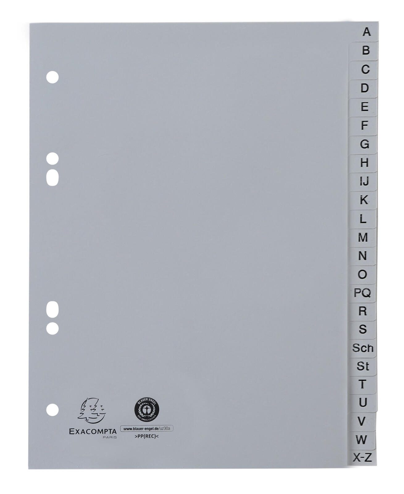 Das Exacompta Ordnerregister Halbformat A-Z A5 ist die ideale Lösung für alle, die Ordnung und Übersichtlichkeit in ihren Unterlagen schätzen. Mit einem eleganten grauen Design fügt sich dieses Register harmonisch in jede Büro- oder Lernumgebung ein und sorgt dafür, dass deine Dokumente stets gut strukturiert sind. Dieses Register ist 24-teilig und ermöglicht eine klare Einteilung deiner Unterlagen von A bis Z. Egal, ob du wichtige Dokumente, Notizen oder Arbeitsblätter organisieren möchtest, die bedruckten Taben helfen dir, schnell und einfach auf die benötigten Informationen zuzugreifen. Das Halbformat ist speziell für A5-Dokumente konzipiert, sodass es perfekt in gängige Ordner und Akten passt. Hergestellt aus hochwertigem Polypropylen (PP) ist das Exacompta Ordnerregister nicht nur langlebig, sondern auch robust und widerstandsfähig gegenüber alltäglichen Abnutzungserscheinungen. Die Universal-Lochung ermöglicht eine flexible Nutzung in verschiedenen Ordnersystemen, sodass du das Register ganz nach deinen Bedürfnissen einsetzen kannst. Die praktische Teilung in 24 Abschnitte bietet ausreichend Platz für eine umfassende Dokumentation, ohne dass du auf Übersichtlichkeit verzichten musst. Das Exacompta Ordnerregister ist somit nicht nur ein funktionales Hilfsmittel, sondern auch ein stilvolles Accessoire für dein Büro oder deinen Arbeitsplatz. Mit diesem Register wird die Organisation deiner Unterlagen zum Kinderspiel und trägt dazu bei, dass du effizienter arbeiten kannst.Technische Daten