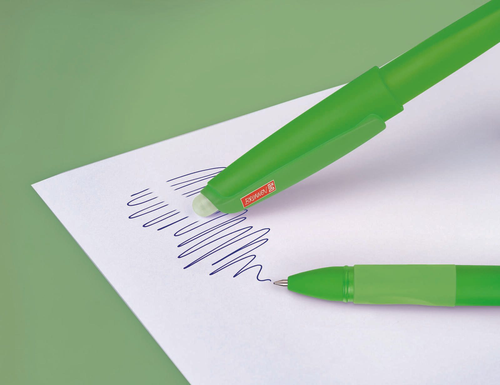 Der BRUNNEN Remove Gelschreiber 0.7 in der attraktiven Schreibfarbe Blau bietet dir ein außergewöhnliches Schreiberlebnis, das sowohl für den Alltag als auch für kreative Projekte ideal ist. Mit seiner feinen Strichstärke von 0.7 mm ermöglicht er präzise und klare Linien, die sich perfekt für Notizen, Zeichnungen oder das Ausfüllen von Formularen eignen. Die Metallspitze sorgt für eine gleichmäßige Tinte und ein reibungsloses Schreiben, während die wischfeste und schnell trocknende Tinte dafür sorgt, dass deine Schriftzüge stets sauber und ordentlich bleiben. Ein besonderes Highlight des BRUNNEN Remove Gelschreibers ist die Radierbarkeit: Fehler können mühelos korrigiert werden, was dir maximale Flexibilität beim Schreiben gibt. Der Gelschreiber ist mit einem praktischen Clip ausgestattet, der eine einfache Befestigung an Notizbüchern oder Taschen ermöglicht, sodass du ihn immer griffbereit hast. Zudem ist er nachfüllbar, was nicht nur umweltfreundlich ist, sondern auch dafür sorgt, dass du lange Freude an diesem hochwertigen Schreibgerät hast. Das grüne Gehäuse des Stiftes verleiht ihm eine frische und ansprechende Optik, die ihn aus der Masse herausstechen lässt. Mit seinem ergonomischen Dreikantgriff liegt der BRUNNEN Remove Gelschreiber angenehm in der Hand und ermöglicht ein ermüdungsfreies Schreiben, auch bei längeren Einsatzzeiten. Ob im Büro, in der Schule oder zu Hause, dieser Gelschreiber ist ein unverzichtbares Werkzeug für alle, die Wert auf Qualität und Funktionalität legen. Entdecke die Vorteile des BRUNNEN Remove Gelschreibers und erlebe ein neues Schreibgefühl, das dir hilft, deine Gedanken und Ideen klar und deutlich festzuhalten.Technische Daten