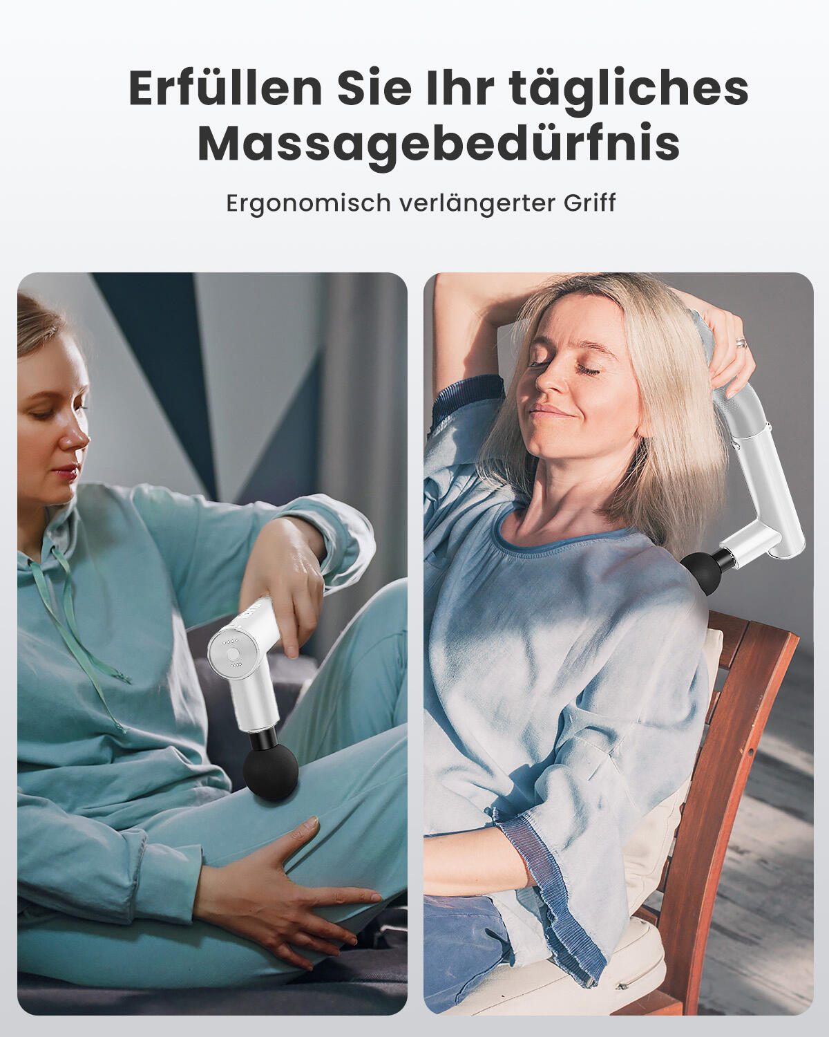 - Besonderheiten: Der bürstenlose 7.4V Motor mit Noise Reduction Technology arbeitet mit weniger als 45 dB, sodass Sie eine kraftvolle Massage in ruhiger Umgebung genießen können