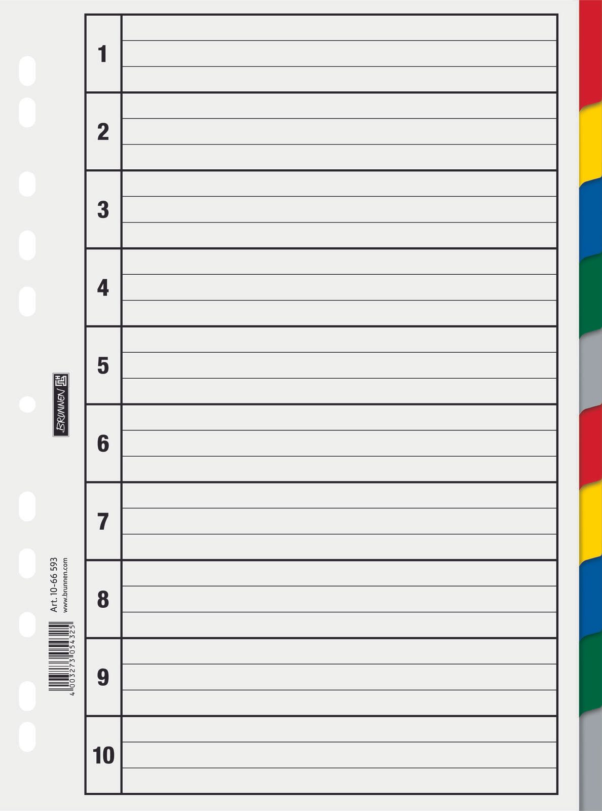 Das BRUNNEN Ordnerregister Vollformat blanko DIN A4 ist die ideale Lösung für eine strukturierte und übersichtliche Ablage deiner Unterlagen. Mit einer praktischen Teilung von 10 Teilen bietet dieses Register ausreichend Platz, um deine Dokumente effizient zu organisieren. Es ist speziell für das Format DIN A4 konzipiert, was es zu einem unverzichtbaren Begleiter für Schule, Studium oder Büro macht.