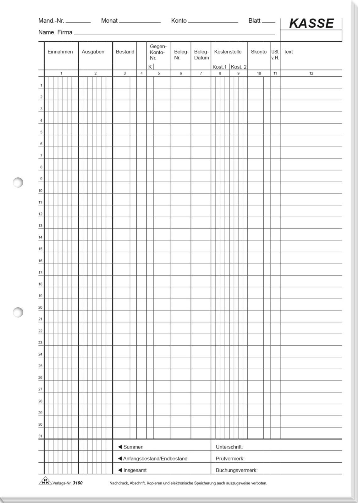 RNK-Verlag Kassenbuch/EDV Formularbuch 3160