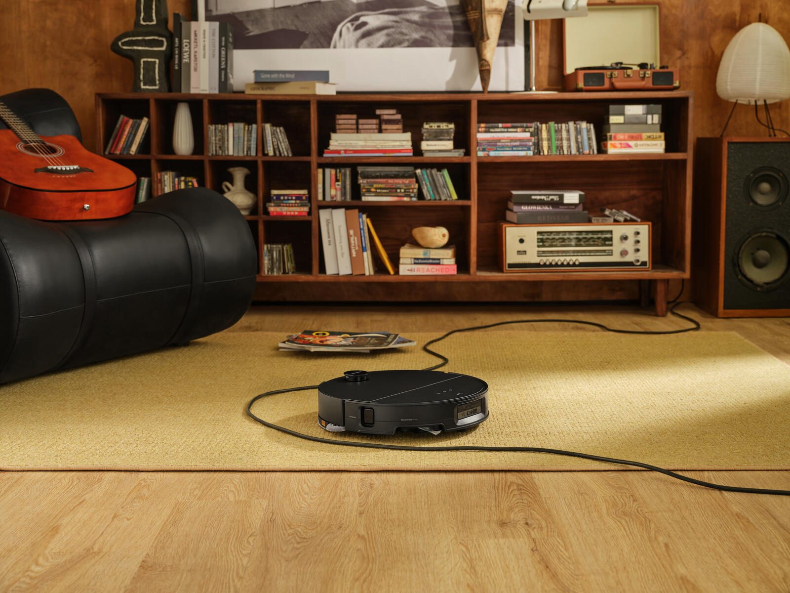 Der Vibrationsmopp des Saros 10 wird automatisch entfernt, wenn kein Wischen erforderlich ist, beispielsweise in den Modi "Nur saugen" und "Zuerst Teppich saugen". Auf diese Weise bleiben langflorige Teppiche so trocken wie möglich.