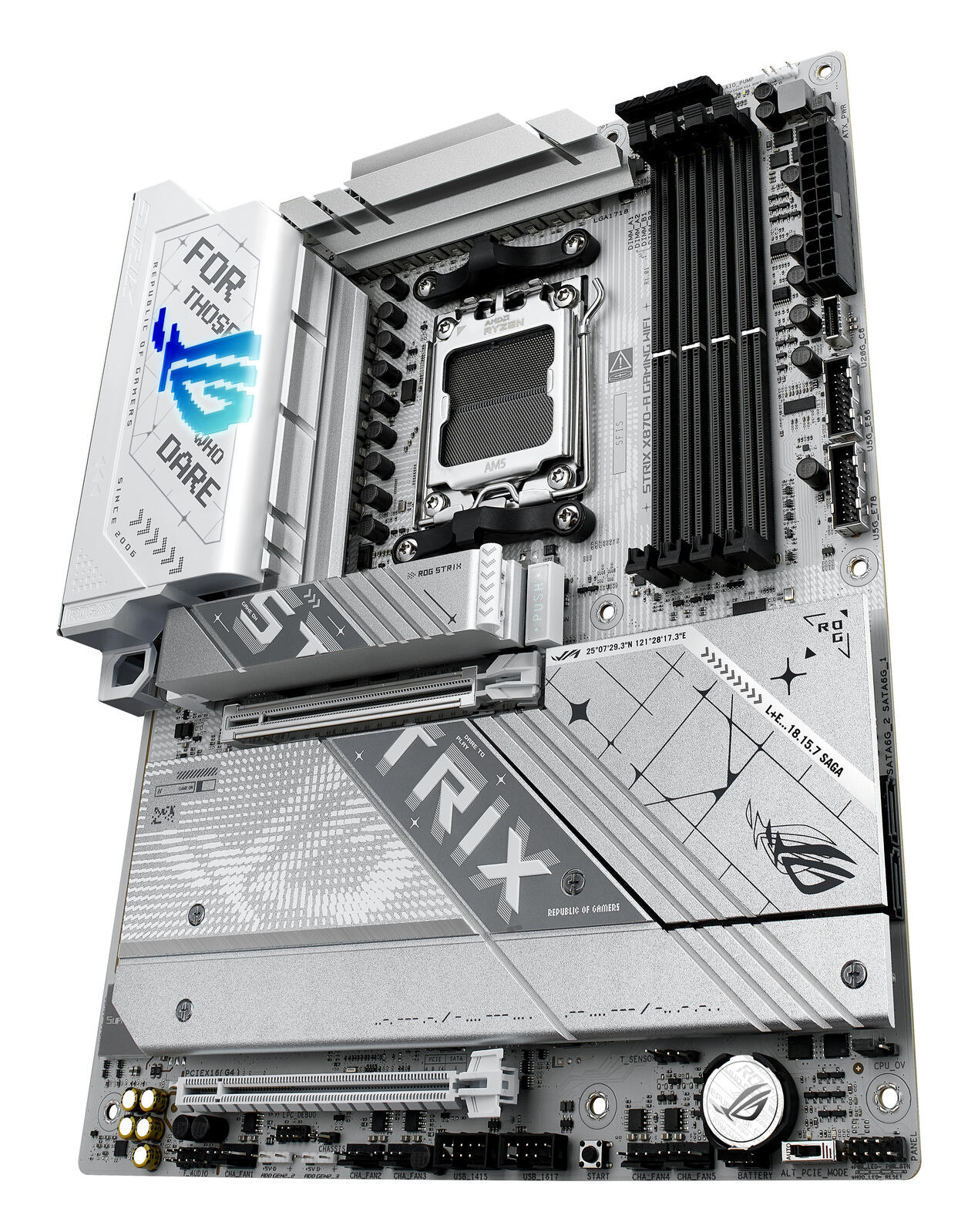 Mit dem ROG Strix X870-A Gaming WiFi kannst du dein System aufwerten. Mit seinem eleganten weißen PCB und der Unterstützung für AMD Ryzen™ Prozessoren der 9000er Serie bietet dieses Mainboard die nötige Leistung und Konnektivität für fortschrittliche KI-Anwendungen. Mit DDR5-Unterstützung, voller PCIe® 5.0-Fähigkeit, zwei USB4®-Anschlüssen und Wi-Fi 7 ist es die ultimative Mischung aus Stil und Leistung.