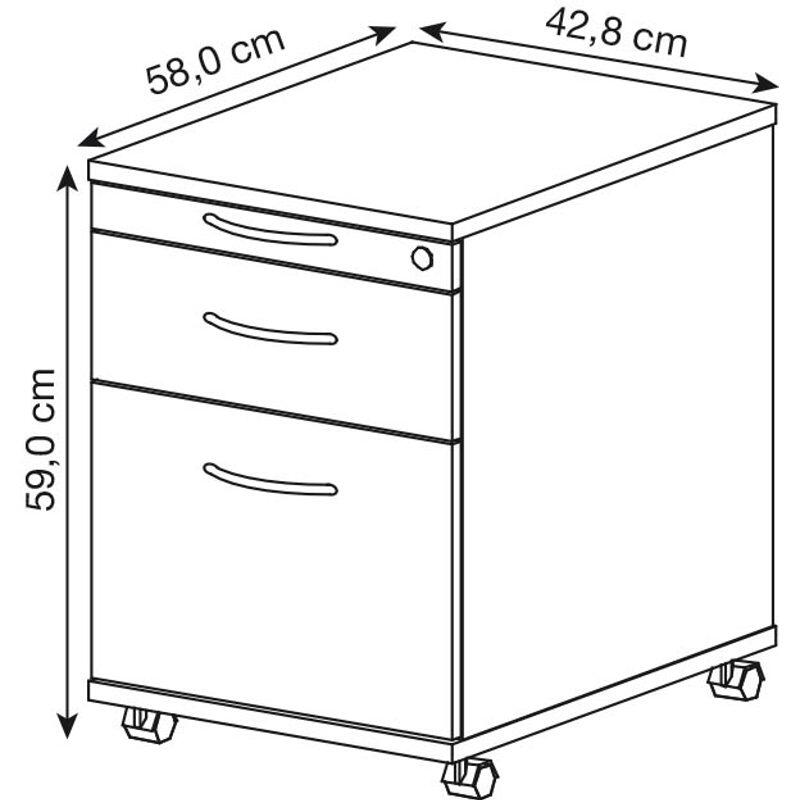 Der HAMMERBACHER Rollcontainer VAC20/N/N/BM in edlem Nussbaum-Design ist die perfekte Ergänzung für dein Büro oder Arbeitszimmer. Mit seinen kompakten Maßen von 42,8 x 58,0 x 59,0 cm bietet er ausreichend Stauraum, ohne dabei viel Platz einzunehmen. Der Rollcontainer überzeugt durch seine hochwertige Verarbeitung aus stabiler Spanplatte und ist sowohl funktional als auch ästhetisch ansprechend.