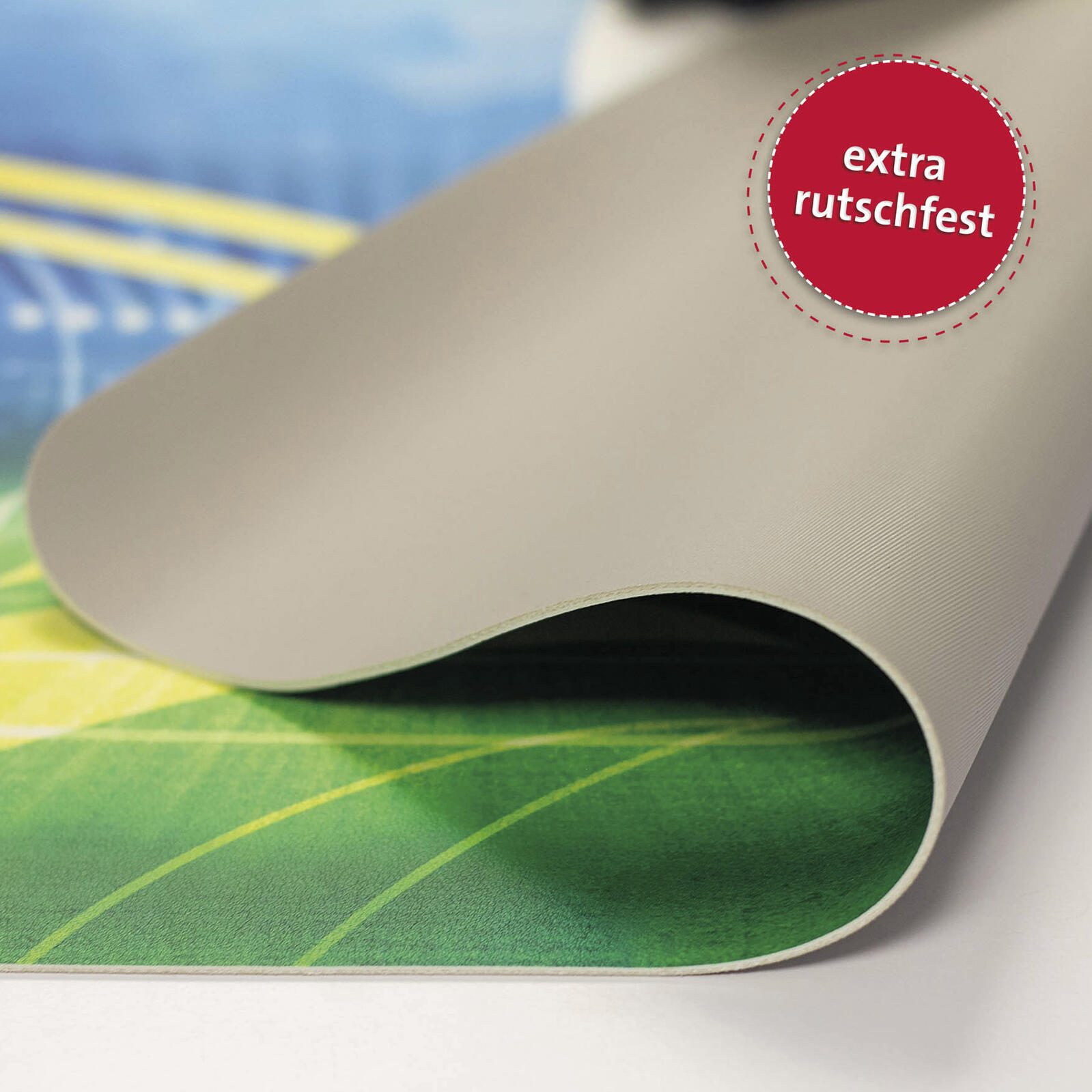 Die Unterlage ist rutschfest gestaltet, was für einen sicheren Halt auf Ihrem Schreibtisch sorgt und ein Verrutschen während der Arbeit verhindert. Das bunte Fußball-Design verleiht jedem Arbeitsplatz eine lebendige und sportliche Note, die besonders Fußballfans anspricht. Die Kombination aus Funktionalität und attraktivem Erscheinungsbild macht diese Schreibtischunterlage zu einem praktischen und dekorativen Accessoire.