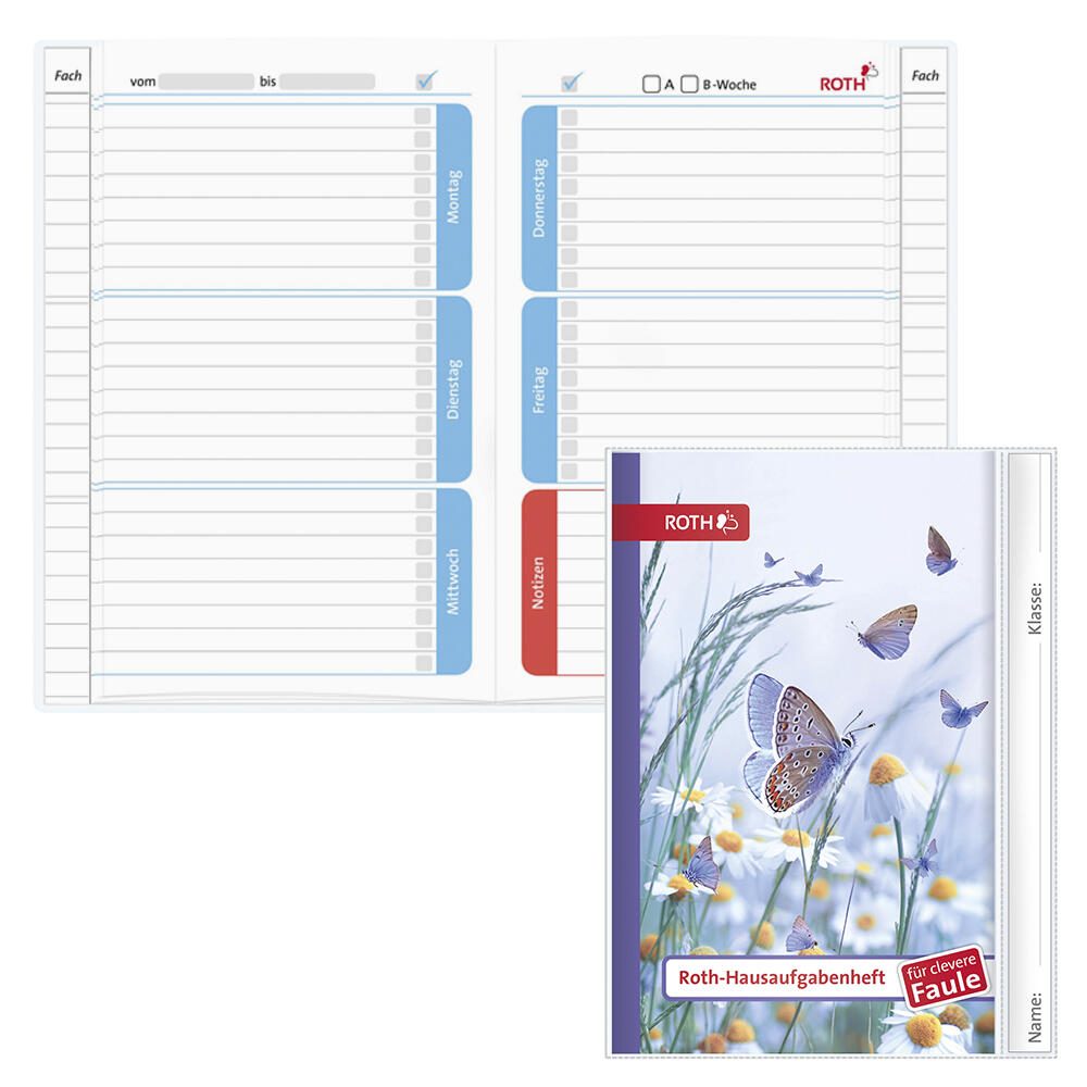 ROTH Hausaufgabenheft für clevere Faule Calm Butterfly liniert DIN A5 104 Blätter
