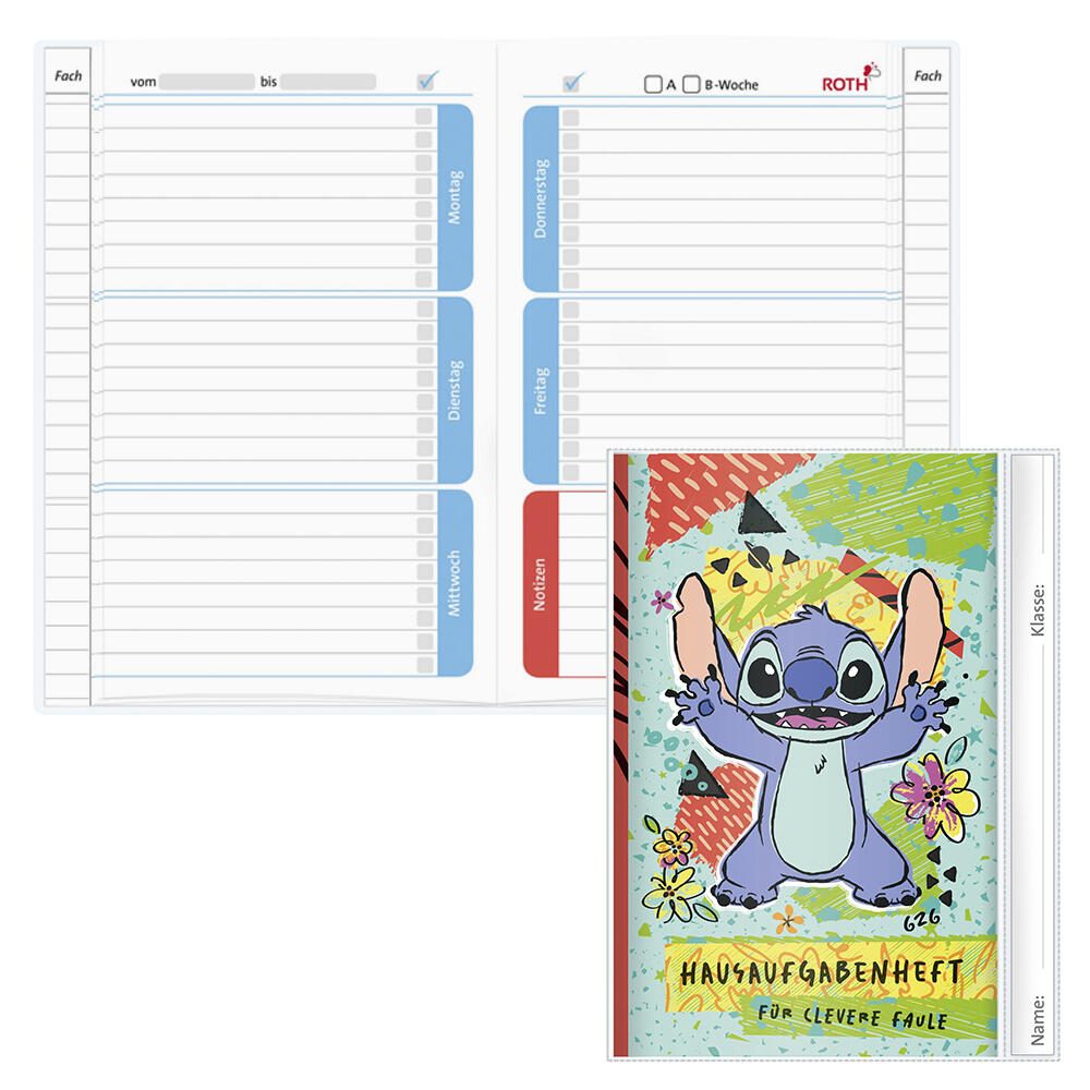 ROTH Hausaufgabenheft für clevere Faule Disney Stitch liniert DIN A5 104 Blätter