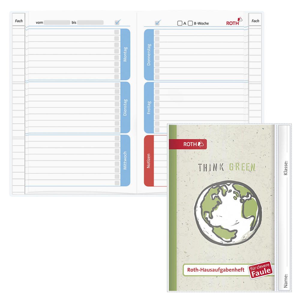 ROTH Hausaufgabenheft für clevere Faule Think Green liniert DIN A5 104 Blätter