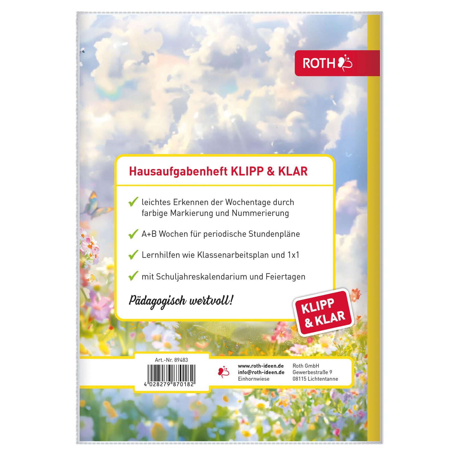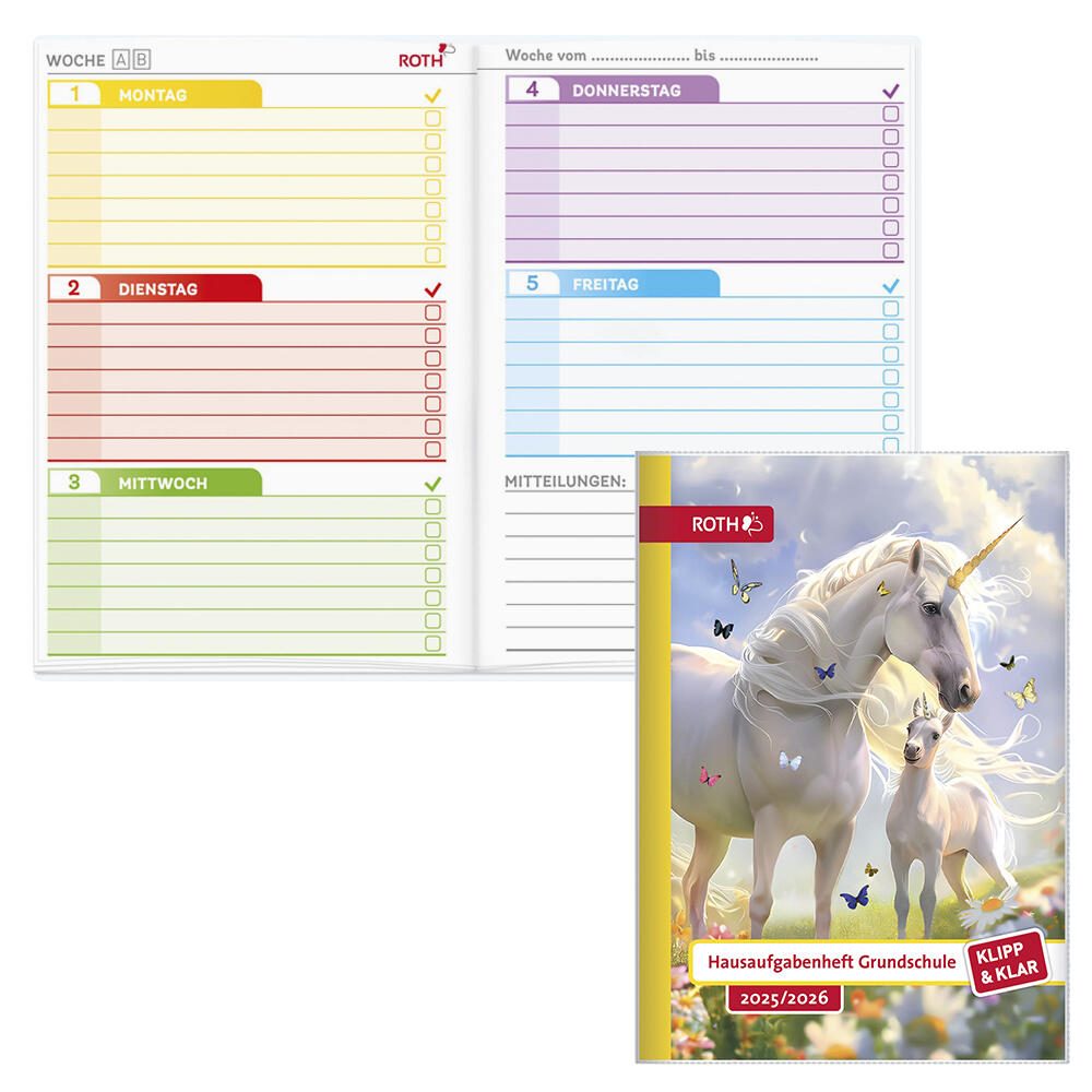 ROTH Hausaufgabenheft Klipp & Klar Einhornwiese liniert DIN A5 96 Blätter