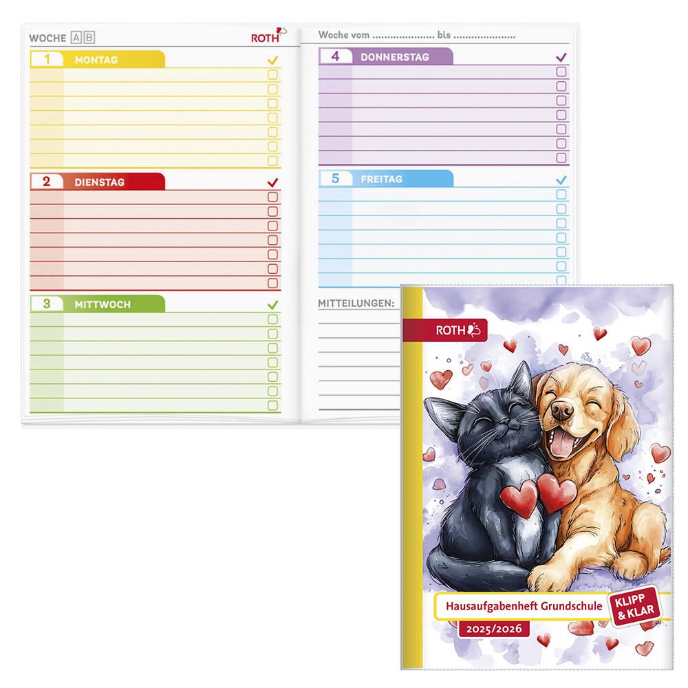 ROTH Hausaufgabenheft Klipp & Klar Hund Katze liniert DIN A5 96 Blätter