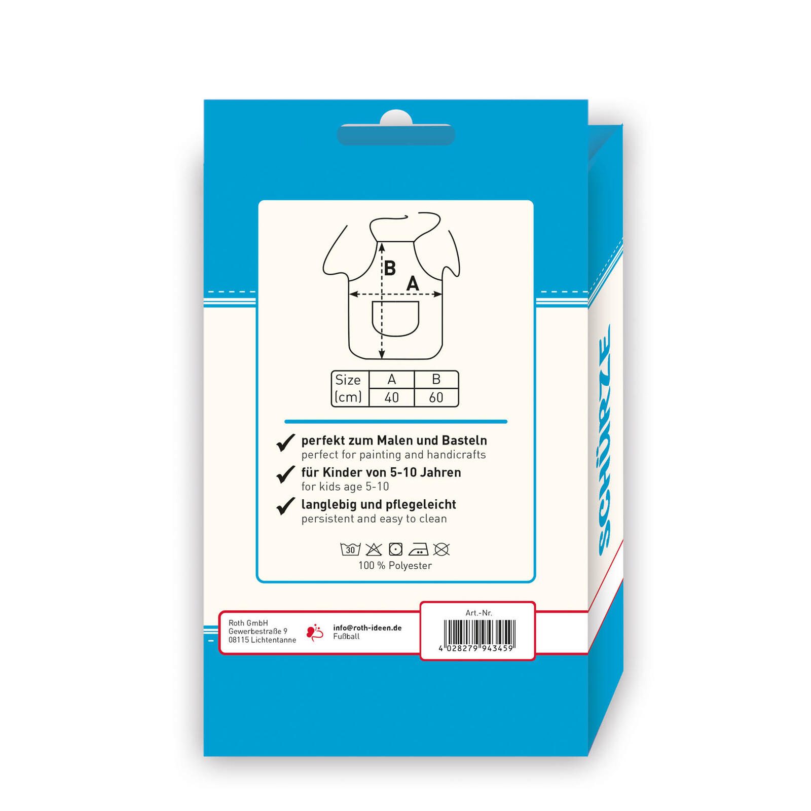 Die ROTH Kinderschürze Fußball in Einheitsgröße ist speziell für Kinder im Kindergarten- und Schulalter konzipiert und bietet optimalen Schutz beim Malen und Basteln. Gefertigt aus 100% Polyester, zeichnet sich die Schürze durch ihre Langlebigkeit und pflegeleichte Handhabung aus. Sie ist bis 30 °C waschbar, was eine einfache Reinigung nach kreativen Aktivitäten gewährleistet.