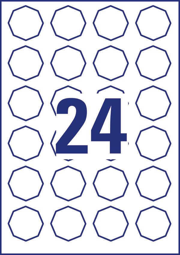 Die AVERY Zweckform Etiketten 5082 in der Größe 40,8 x 40,3 mm bieten dir eine vielseitige Lösung für alle deine Beschriftungsbedürfnisse. Mit einem Pack von 240 Etiketten auf 10 A4-Blättern sind diese hochwertigen, weißen Etiketten ideal für den Einsatz im Büro, zu Hause oder in der Schule. Hergestellt aus holzfreiem, matt beschichtetem Papier, überzeugen diese Etiketten nicht nur durch ihre Umweltfreundlichkeit, sondern auch durch ihre Benutzerfreundlichkeit. Sie sind selbstklebend und lassen sich mühelos auf verschiedenen Oberflächen anbringen. Dank der speziellen Beschichtung können die Etiketten problemlos mit Inkjet-Druckern, Kopierern und S/W-Laserdruckern bedruckt werden, was dir eine hohe Flexibilität bei der Gestaltung deiner Etiketten ermöglicht. Die achteckige Form und die abgerundeten Ecken sorgen für ein ansprechendes Erscheinungsbild, das sich von herkömmlichen rechteckigen Etiketten abhebt. Zudem sind die Etiketten lösemittelfrei und chlorfrei gebleicht, was sie zu einer sicheren Wahl für den Einsatz in verschiedenen Bereichen macht. Ein weiteres Plus ist die Ablösbarkeit der Etiketten, die dir ermöglicht, sie ohne Rückstände zu entfernen, falls du einmal eine Änderung vornehmen möchtest. Damit sind die AVERY Zweckform Etiketten 5082 nicht nur praktisch, sondern auch ästhetisch ansprechend und umweltbewusst. Egal, ob du sie zur Kennzeichnung von Produkten, zur Organisation von Dokumenten oder für kreative Bastelprojekte verwendest, diese Etiketten bieten dir die Qualität und Vielseitigkeit, die du benötigst.Technische Daten