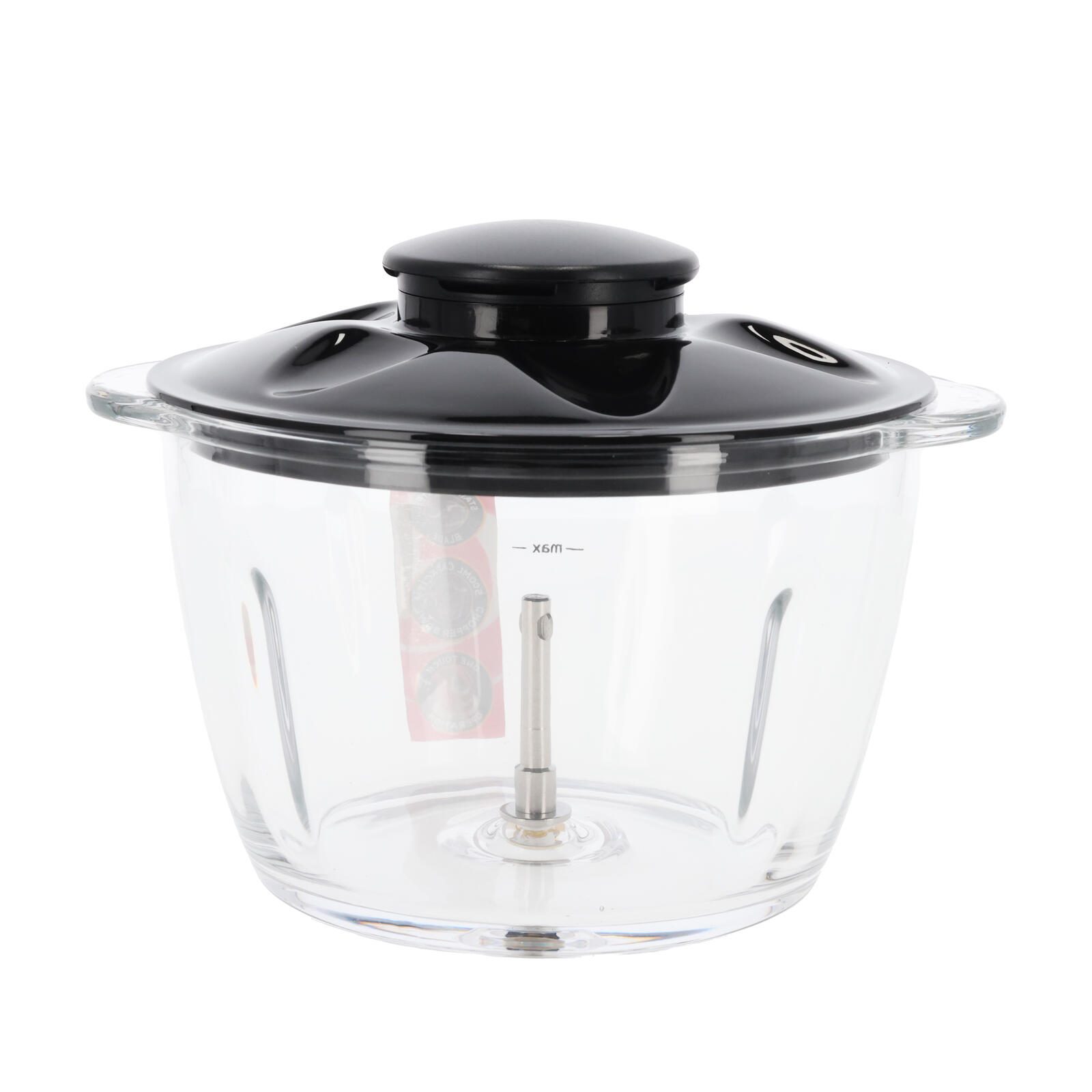 Der spülmaschinengeeignete Glasbehälter mit einem Fassungsvermögen von 500 ml eignet sich dank eines zusätzlichen Deckels zugleich für die Aufbewahrung der zerkleinerten Zutaten.
