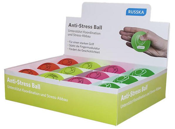 RUSSKA Antistressball Ø 6,0 cm 3 x orange, 3 x gelb, 3 x pink, 3 x grün