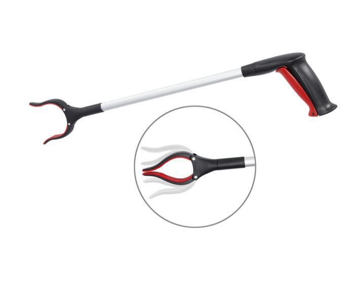 Das Gerät besteht aus einer Kombination von Aluminium und Kunststoff. Dieses Material sorgt für eine stabile und zugleich leichte Konstruktion, die eine einfache Handhabung gewährleistet. Die Farbkombination aus Schwarz und Silber verleiht dem Greifer ein modernes und unauffälliges Design, das sich gut in verschiedene Umgebungen einfügt.