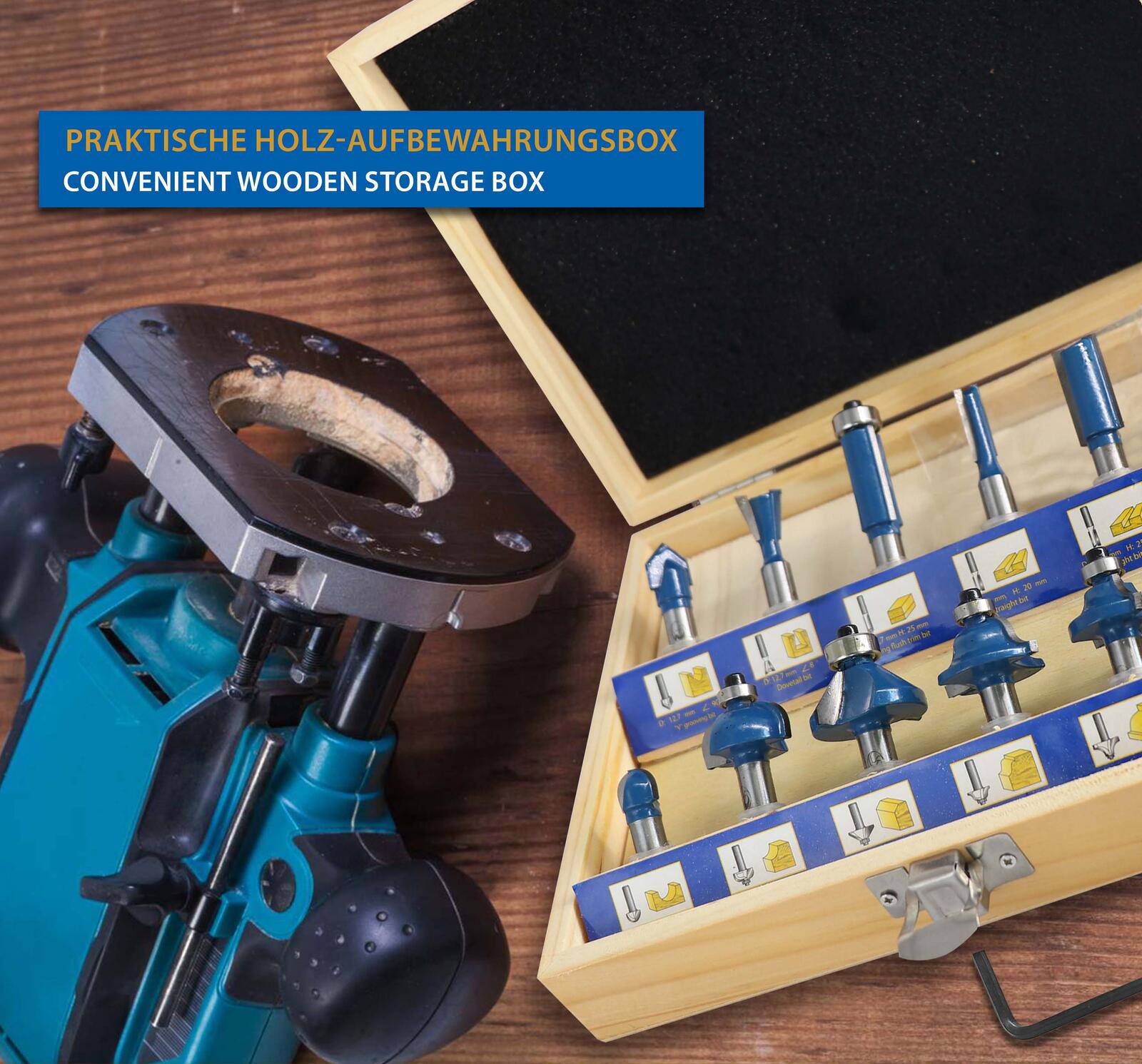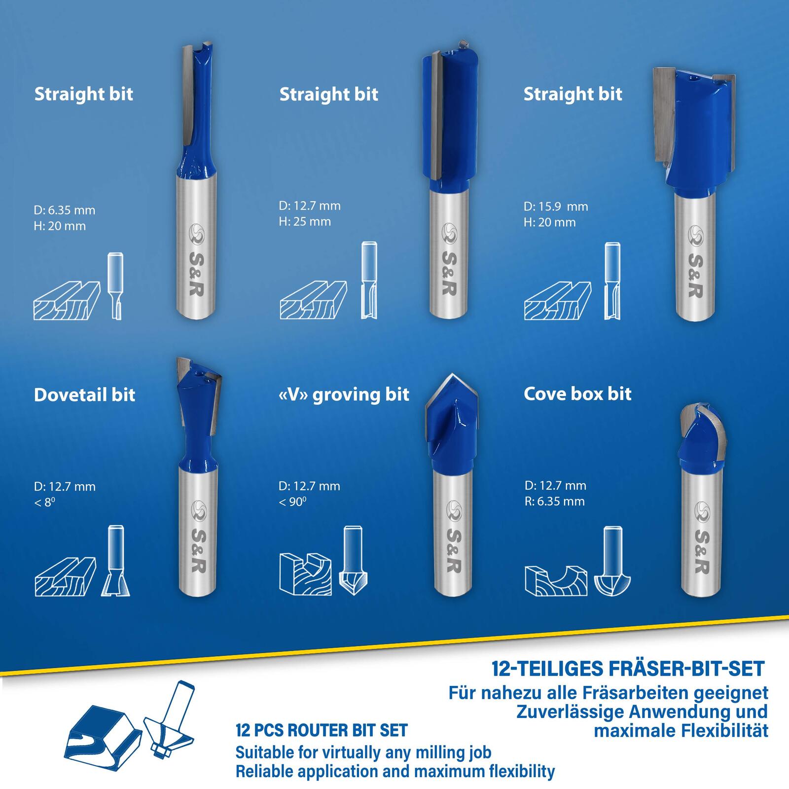 Mit insgesamt zwölf verschiedenen Fräsern bietet das Set eine breite Palette an Formen und Größen, die vielfältige Anwendungen und Gestaltungsmöglichkeiten erlauben. Dies macht das S&R Fräser-Set zu einem unverzichtbaren Werkzeug für alle, die Wert auf Qualität, Vielseitigkeit und Langlebigkeit legen.