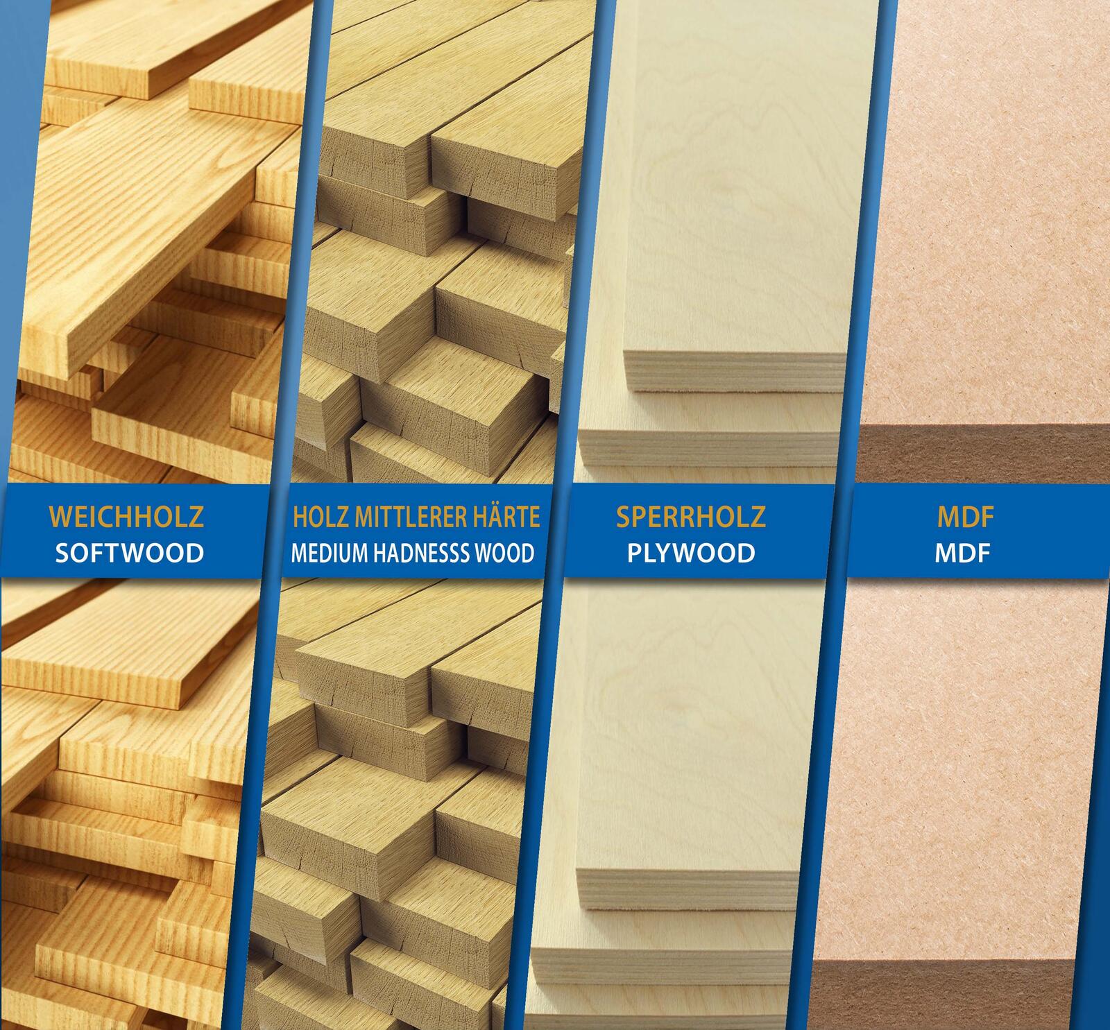 - Geeignet für: Holz, MDF, Sperrholz/Tischlerplatte, Weichholz