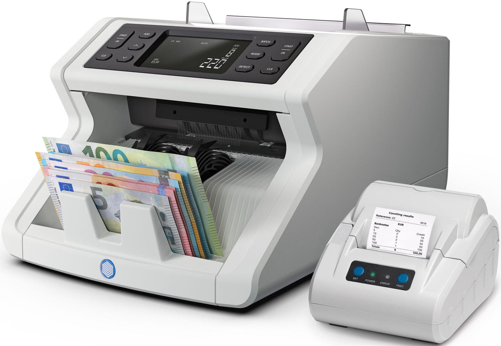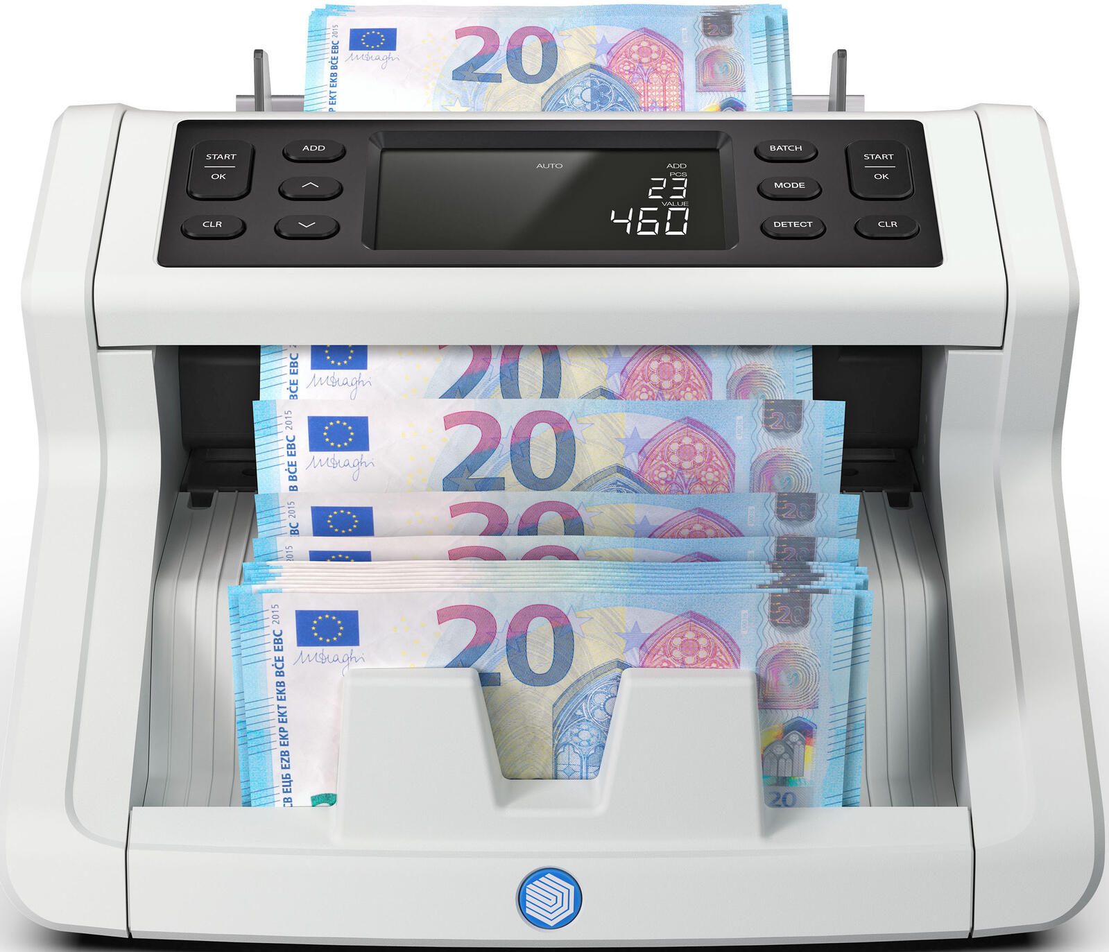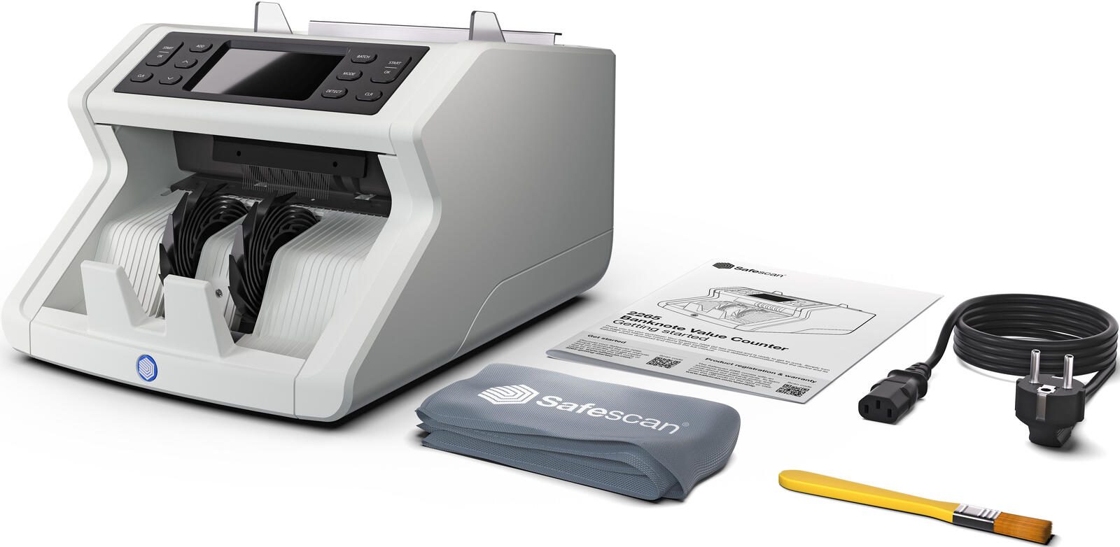Der Safescan Banknotenzähler 2265 (G2) ist die ideale Lösung für alle, die eine effiziente und zuverlässige Möglichkeit suchen, Banknoten schnell zu zählen und auf ihre Echtheit zu überprüfen. Mit seinem großen LCD-Display und dem übersichtlichen Keypad, das mit haptischen Tasten ausgestattet ist, bietet dieses Gerät eine benutzerfreundliche Bedienung, die das Zählen von Geldscheinen zu einer einfachen Aufgabe macht. Der Banknotenzähler unterstützt die Währungen EUR und GBP und ist damit vielseitig einsetzbar. Mit einer Kapazität von bis zu 300 Banknoten im Einzug ermöglicht er ein schnelles und effizientes Arbeiten, während die beeindruckende Geschwindigkeit von 1.000 Banknoten pro Minute sicherstellt, dass du auch bei hohem Aufkommen nicht ins Stocken gerätst. Der Betrieb erfolgt über das Stromnetz, was eine konstante Leistungsfähigkeit gewährleistet. Ein herausragendes Merkmal des Safescan 2265 (G2) ist die umfassende Echtheitsprüfung, die nach verschiedenen Methoden wie UV, MG, SD, TD und CD erfolgt. Dadurch kannst du sicher sein, dass die gezählten Banknoten echt sind und keine Fälschungen enthalten. Zudem bietet Safescan kostenlose Währungsupdates, sodass du stets auf dem neuesten Stand bleibst und keine Zeit mit veralteten Informationen verlierst. Mit dem Safescan Banknotenzähler 2265 (G2) erhältst du ein hochwertiges Produkt, das nicht nur durch seine technischen Merkmale überzeugt, sondern auch durch seine Benutzerfreundlichkeit und Zuverlässigkeit. Ideal für den Einsatz in Geschäften, Banken oder anderen Einrichtungen, wo eine präzise und schnelle Zählung von Bargeld erforderlich ist.Technische Daten