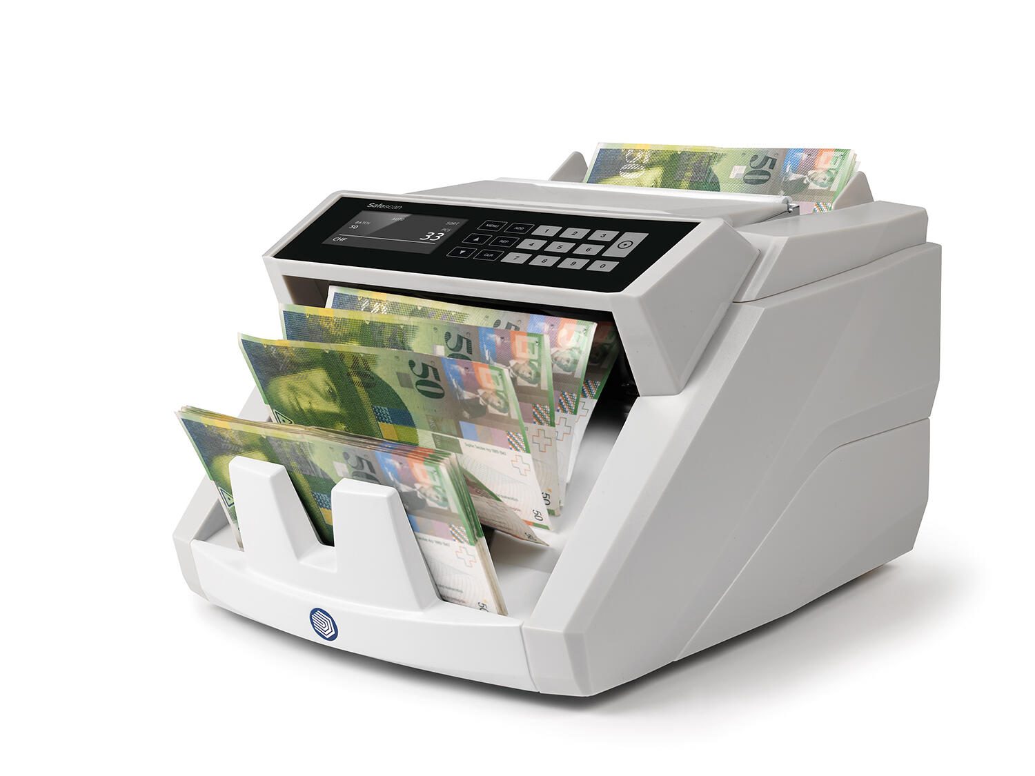 Der Safescan Banknotenzähler 2465s ist die ideale Lösung für alle, die eine effiziente und zuverlässige Möglichkeit zur Zählung von Banknoten suchen. Mit seiner eleganten grauen Farbgebung fügt sich dieses Gerät nahtlos in jede Umgebung ein und bietet eine benutzerfreundliche Bedienung. Dieser Banknotenzähler ist updatefähig, was bedeutet, dass du immer die neuesten Funktionen und Sicherheitsstandards nutzen kannst. Er unterstützt eine Vielzahl von Währungen, darunter CHF, EUR, GBP, NOK, PLN und SEK, und ist somit vielseitig einsetzbar, egal ob für den Einzelhandel, Gastronomie oder andere Branchen. Mit einer beeindruckenden Kapazität von bis zu 220 Banknoten pro Einzug kannst du große Mengen an Bargeld schnell und effizient verarbeiten. Die Geschwindigkeit von bis zu 1.000 Banknoten pro Minute sorgt dafür, dass du wertvolle Zeit sparst und deine Arbeitsabläufe optimierst. Die Echtheitsprüfung erfolgt durch verschiedene Technologien, darunter UV, MG, IR, MT, SD, TD und CD. Diese umfassenden Sicherheitsmerkmale garantieren, dass du stets mit echten Banknoten arbeitest und Betrug effektiv vorbeugen kannst. Der Betrieb des Safescan 2465s erfolgt über das Stromnetz, was eine konstante Leistung und Zuverlässigkeit gewährleistet. Mit diesem Banknotenzähler erhältst du ein hochwertiges Produkt von Safescan, einem renommierten Hersteller, der für seine innovativen Lösungen im Bereich der Bargeldverarbeitung bekannt ist. Der Safescan Banknotenzähler 2465s ist die perfekte Wahl für alle, die Wert auf Effizienz, Sicherheit und Benutzerfreundlichkeit legen.Technische Daten