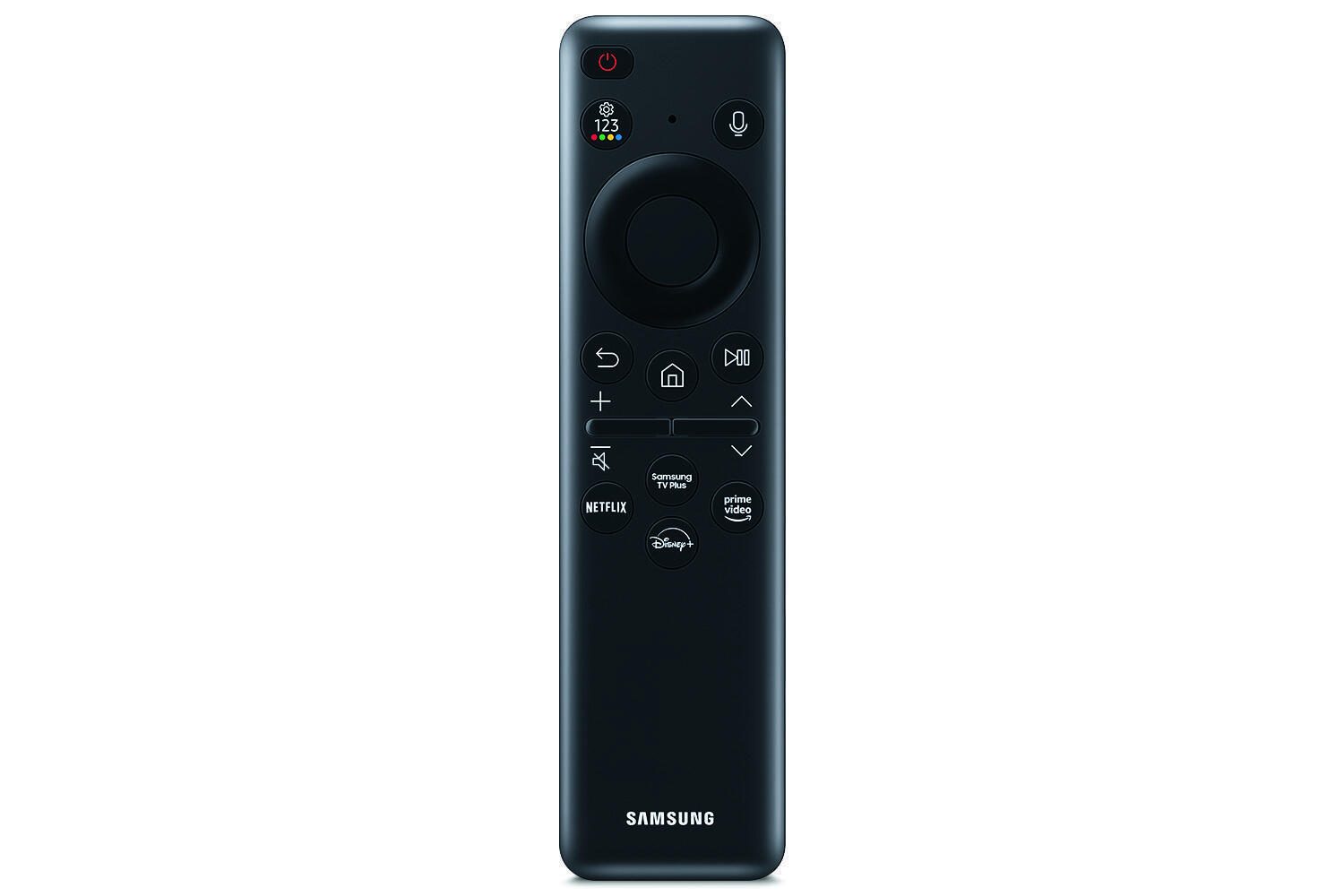 SolarCell RemoteSolar-Fernbedienung aus recycelten MaterialienMit dem auf der Rückseite integrierten Solarmodul kannst du deine Fernbedienung bequem per Sonnenenergie aufladen und in Zukunft auf Einwegbatterien verzichten. Darüber hinaus bietet sie dir smarte Funktionen wie das integrierte Mikrofon, mit dem sich ganz bequem ein Sprachassistent aufrufen lässt. 1 Um die Fernbedienung mit Solarenergie aufzuladen, legst du sie mit dem Solarmodul nach oben hin ab. Lege sie etwa in dein Wohnzimmer, während das Licht eingeschaltet ist, oder stelle sie in der Nähe eines Fensters auf, wo sie natürliches Sonnenlicht aufnehmen kann.2 Wenn der Akku der SolarCell Remote leer ist, muss er mit einem USB-C-Kabel aufgeladen werden. Der Ladezustand des Akkus kann über die Pop-up-Anleitung auf dem TV-Bildschirm überprüft werden. 3 Das Design und die Tastenanordnung der SolarCell Remote können je nach Region variieren. 4 Die SolarCell Remote in 2024 TV-Modellen enthält mindestens 24 % recyceltes Plastik (basierend auf dem Gewicht des gesamten Plastiks). |