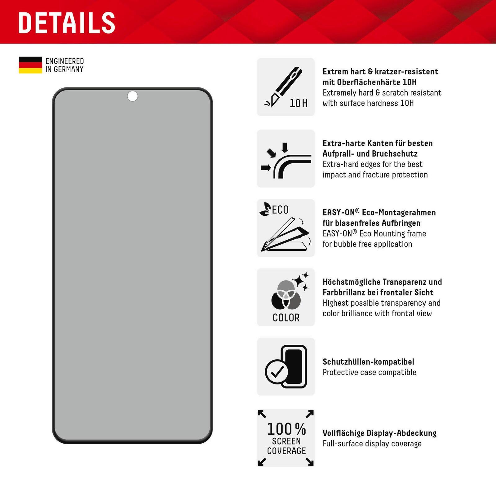 Im Vergleich zu sogenannten 2D Schutzgläsern decken die Panzergläser mit Sichtschutz nicht nur den aktiven, sondern den gesamten Displaybereich ab. Das bedeutet den optimalen Schutz des ganzen Displays und die Verbesserung des Nutzererlebnisses: maximaler Display- und Blickchutz ohne störende Kanten.